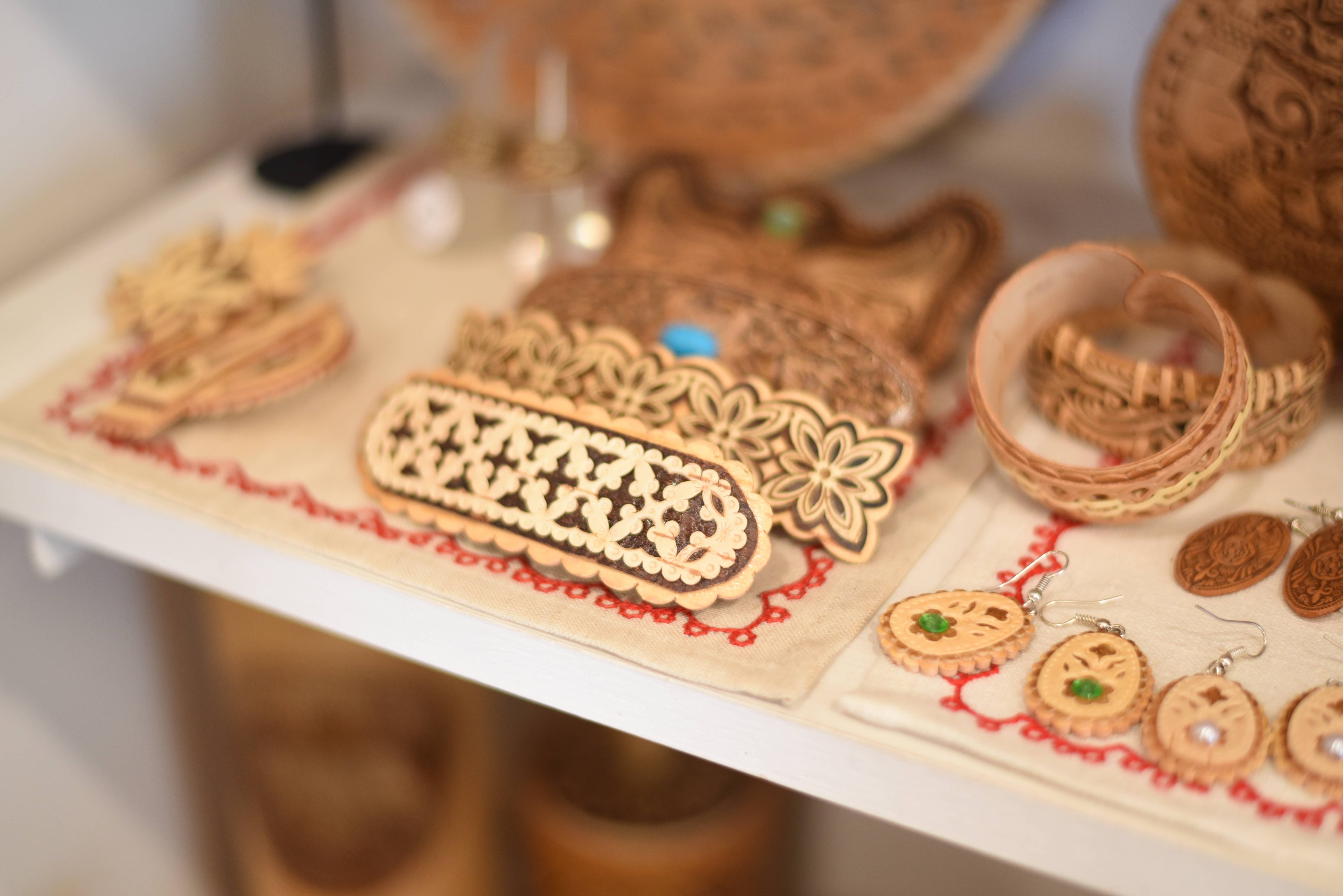 お店の奥を覗くと、小さな可愛い小物を発見!!シベリアの白樺の樹皮で作られた「ベレスタ」という小箱やアクセサリーです。樹皮というのを忘れるくらい柔らかく軽く、自然の色がきれいに出ていて、ちょっとした特別感を感じます♪