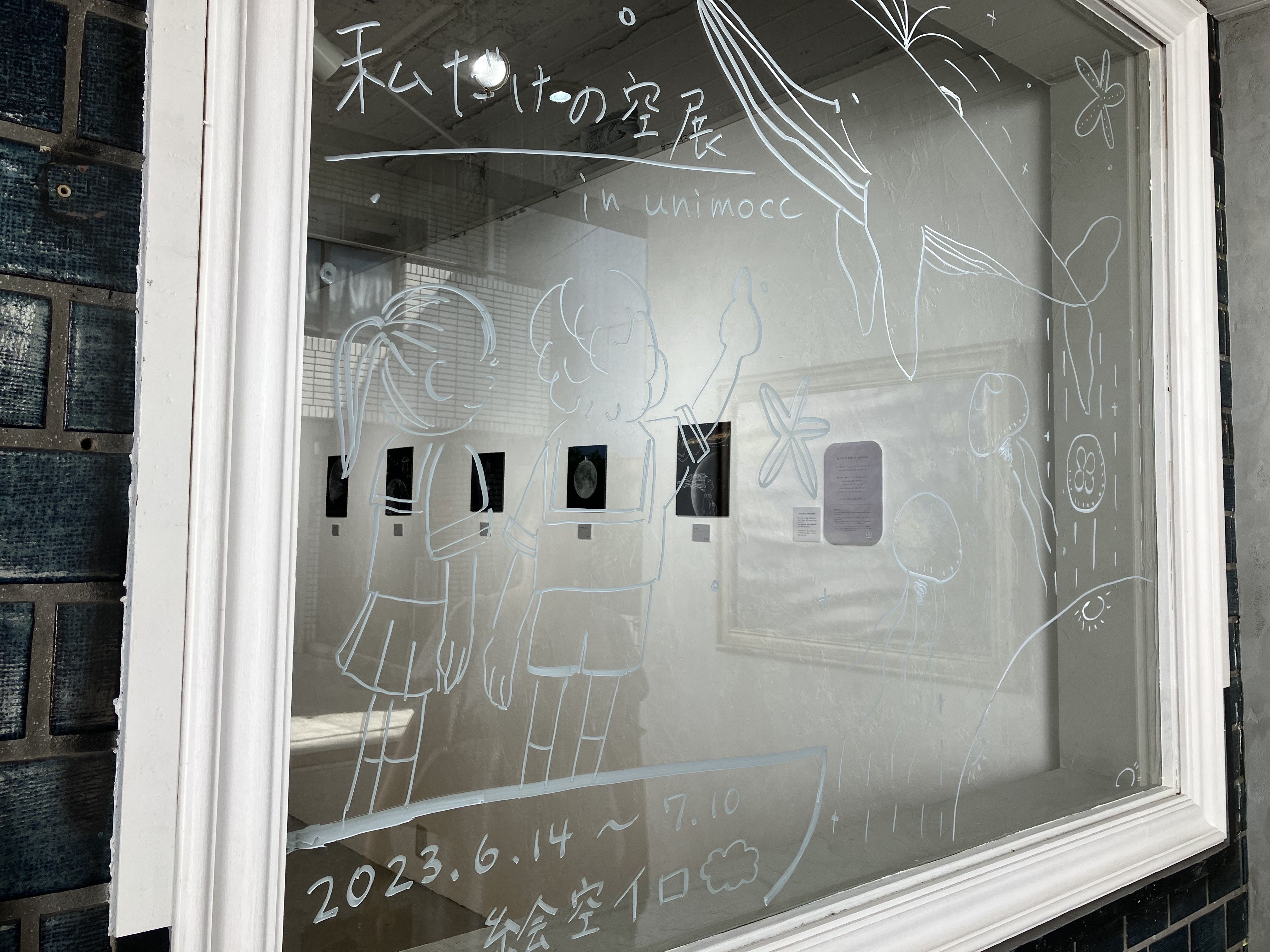 作品を展示されている作家さんが手書きされたものになり、イベントが変わるたびにガラス窓の絵も変わります。