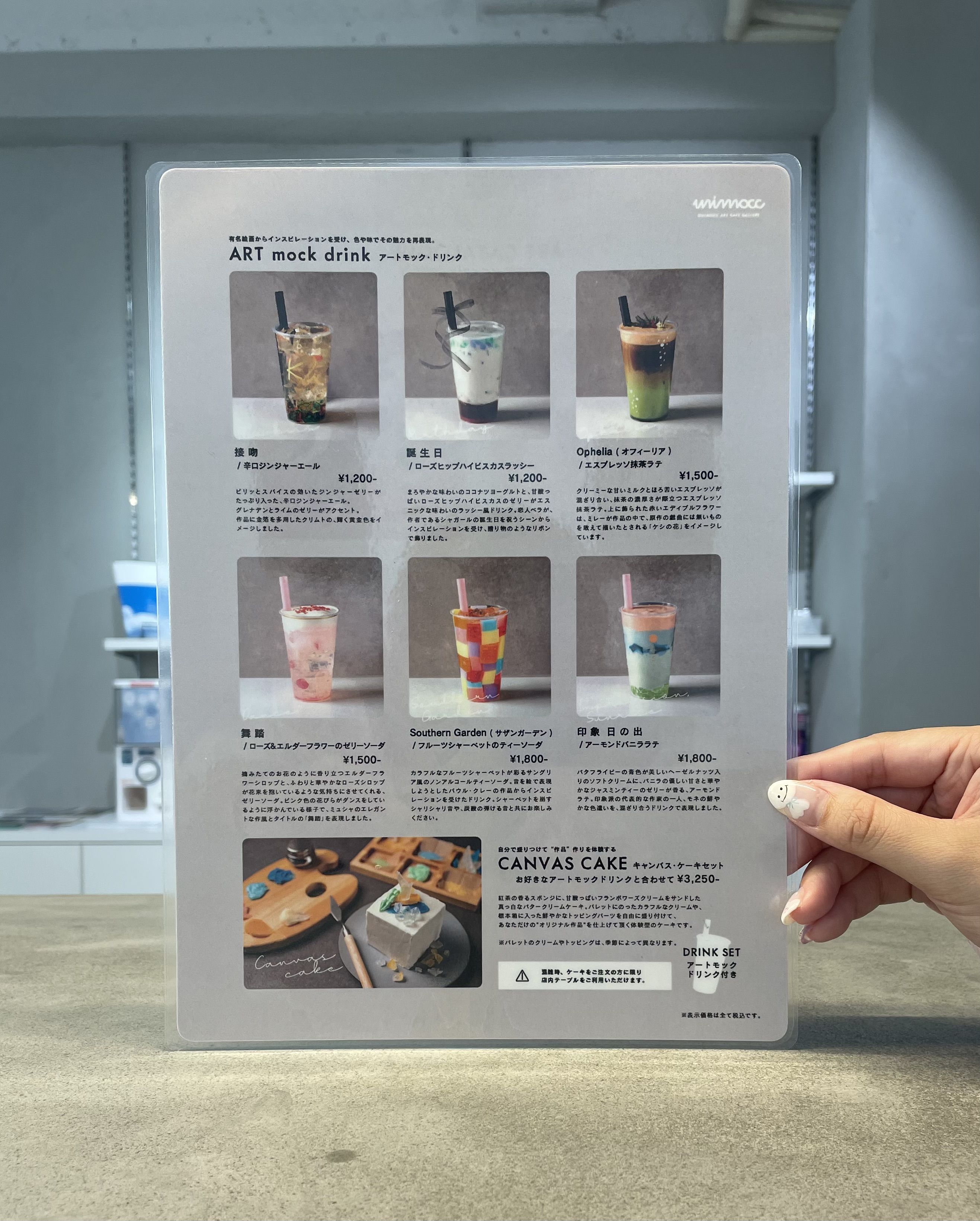 名画をモチーフにした「アートモックドリンク」は全部で6種類ですが、この日は期間限定(7・8月)のドリンク「星月夜」もあったので、なんと7種類☆