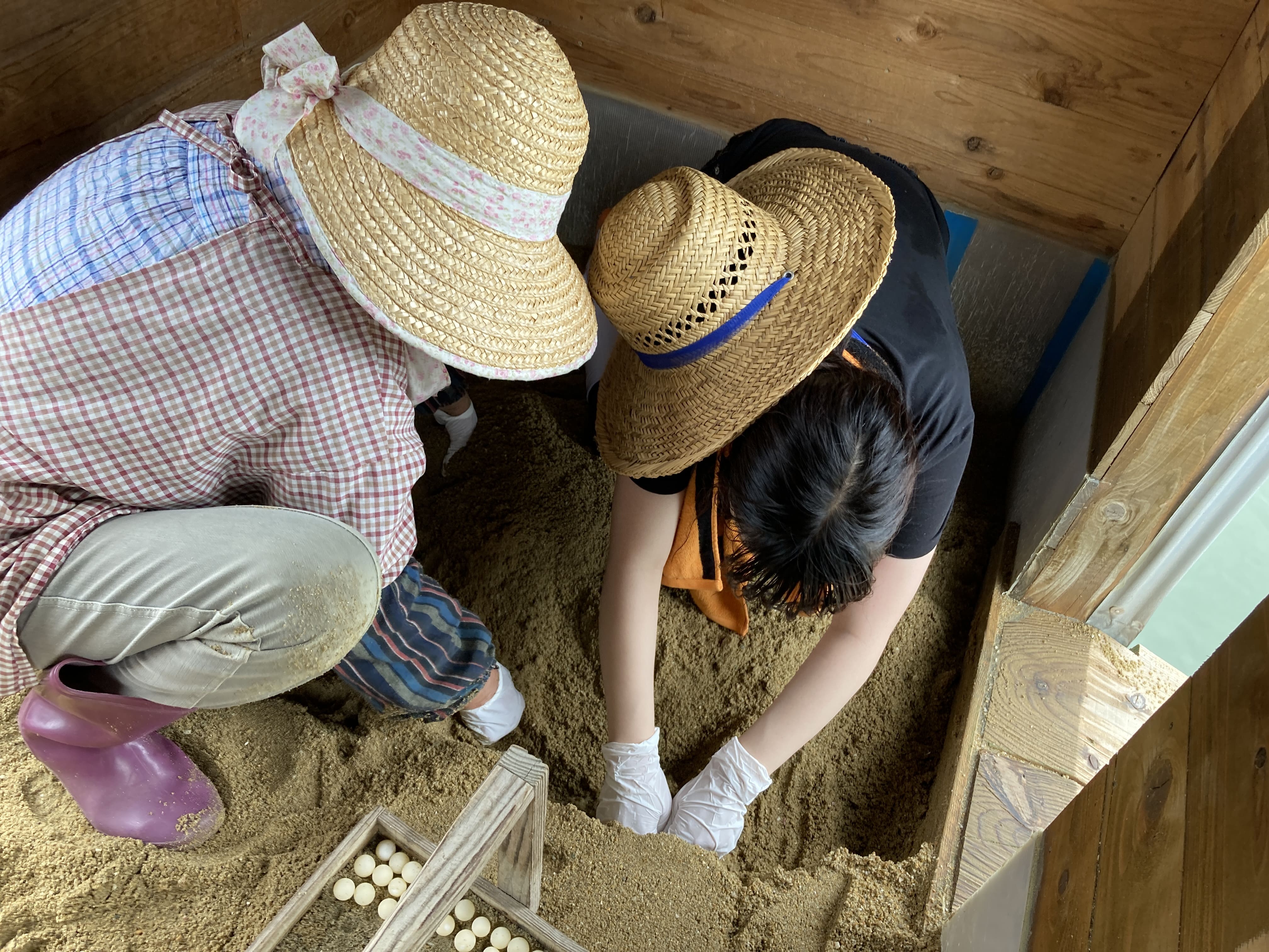 30cm以上もの深さの砂を、卵が割れないように注意しながら掘り進めていきます。