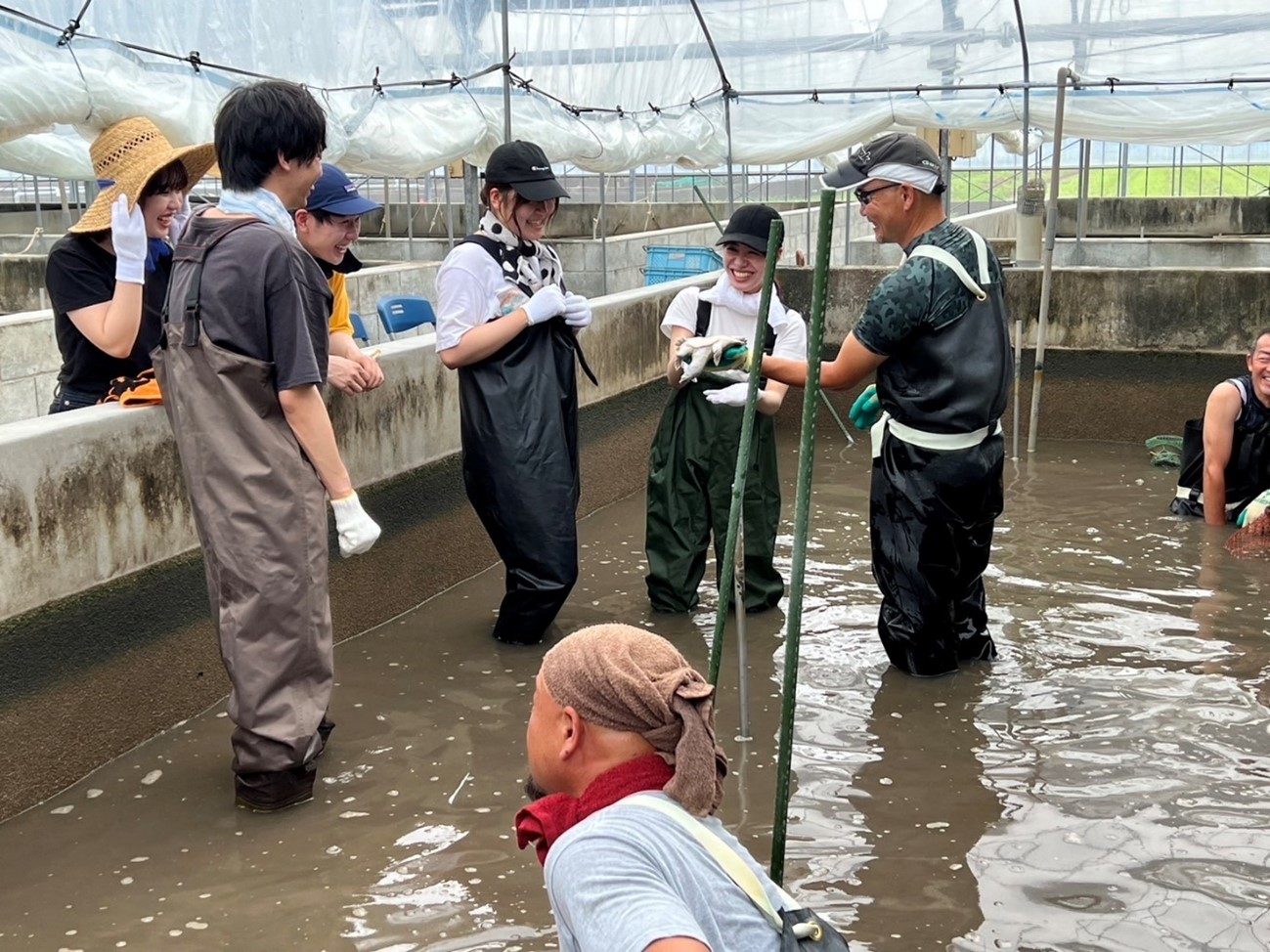 養殖場のみなさんの温かさとやさしさに包まれながら、研修スタートです。
