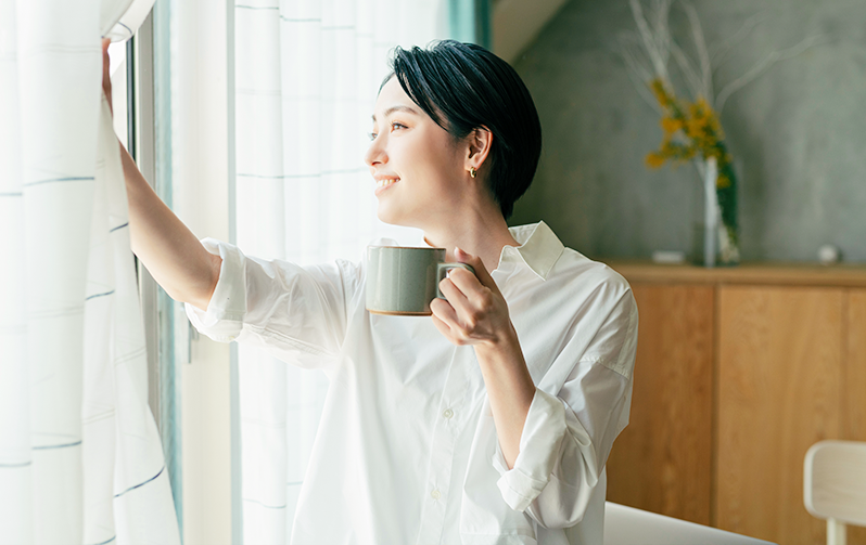 昼夜を問わずにプライバシーを守る遮像カーテンなど、防犯性でインテリアを選ぶのも◎