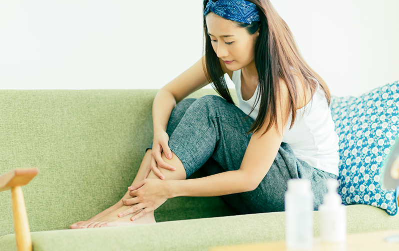 頑張っている女性の足に労りを