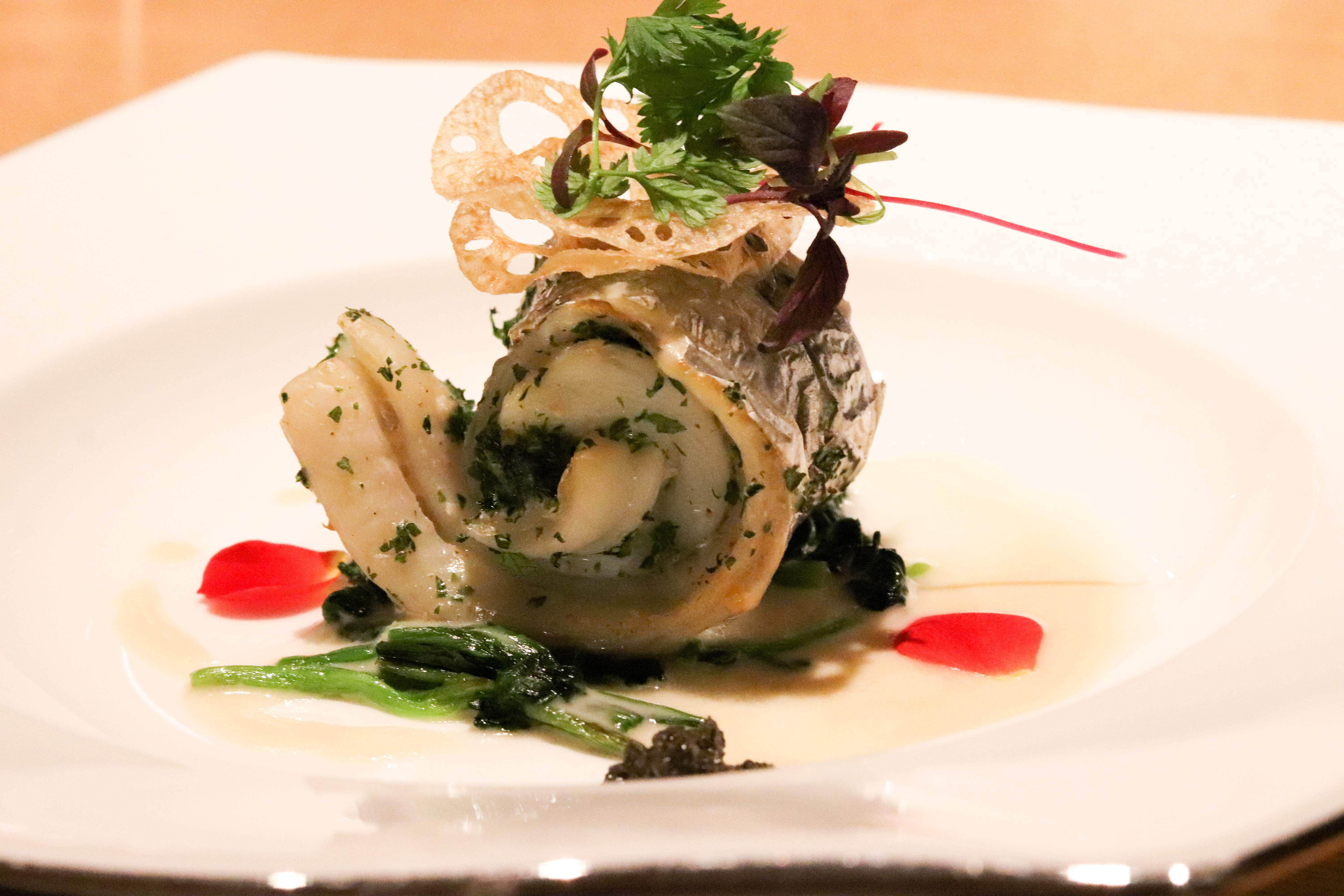 特に私が気に入ったのは伊予灘の太刀魚。くるくるっと巻いてある盛り付けも楽しい♪身がふわっふわっな太刀魚は、口の中にいれると香草の香りと合わさってとても美味。周りのソースをつけるとまた優しい味になり、何度もおいしい!が口の中に訪れます。