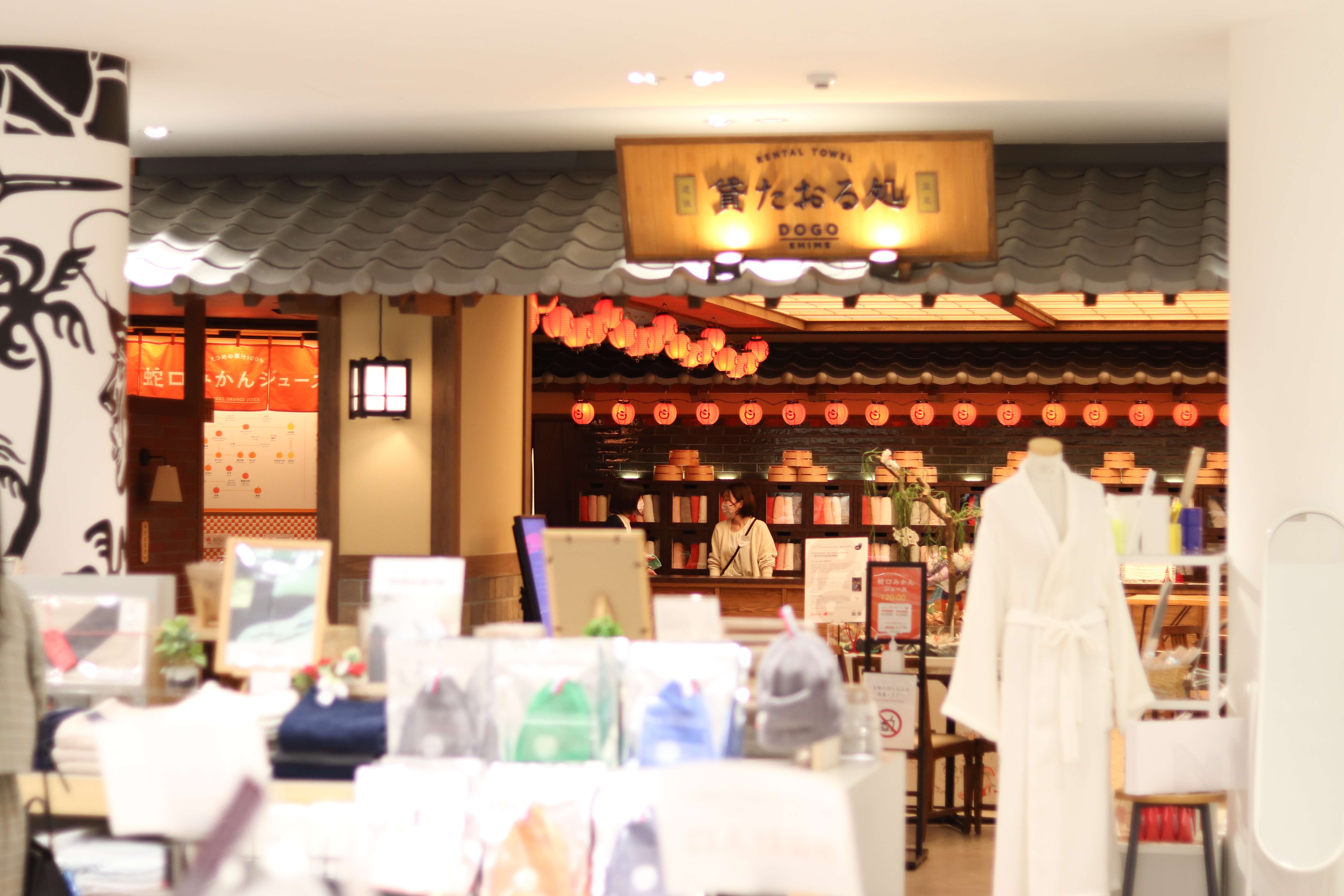 道後商店街にあるタオル専門店「伊織 本店」。約2,000種類をそろえる日本最大級の今治タオル取扱店です