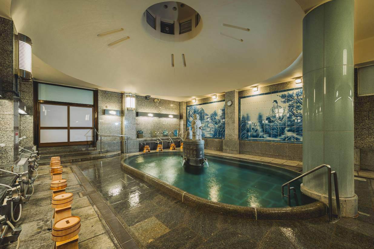 館内に入るとエントランスから愛媛の伝統工芸をふんだんに取り入れています。他にもプロジェクションマッピングされる壁画に囲まれた大浴場や、約60畳の休憩できる大広間、道後温泉にまつわる伝説を表現した5つの個室休憩室など、一つ一つにこだわった空間が、ゆったりとした時間を過ごせるように用意されています。
