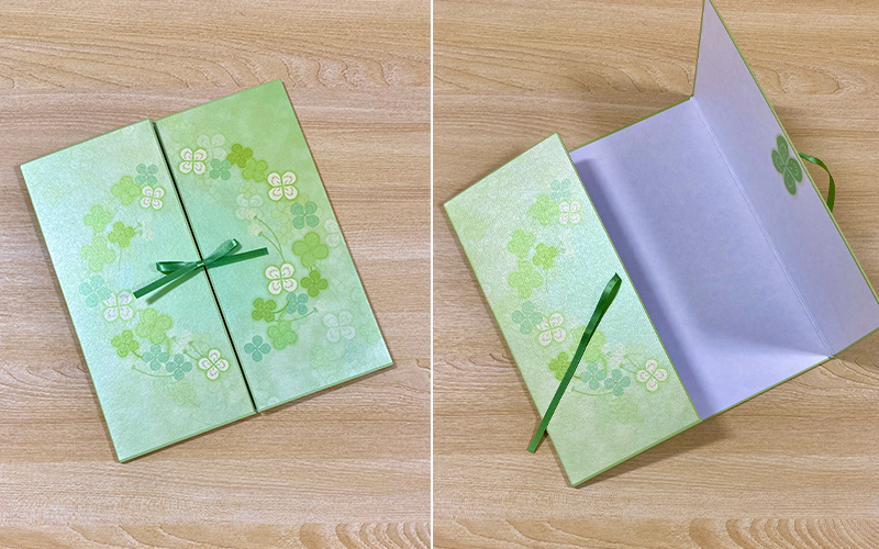 カラー色紙 両開き リボン クローバー柄