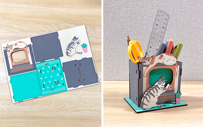 ウッドパズル/ペンスタンド(テレビ猫)