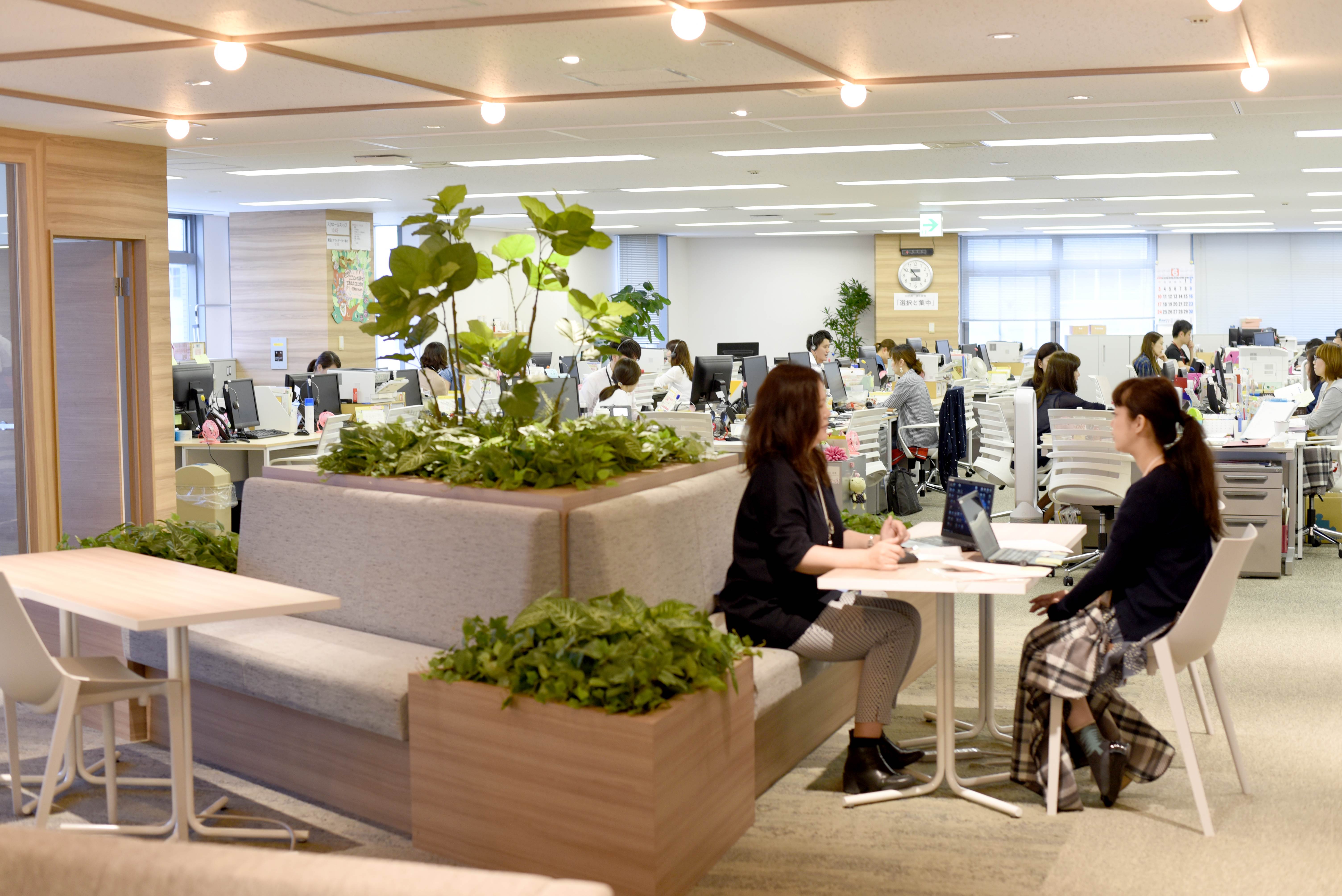中央に緑を置き、打ち合わせをするスペースがあります。