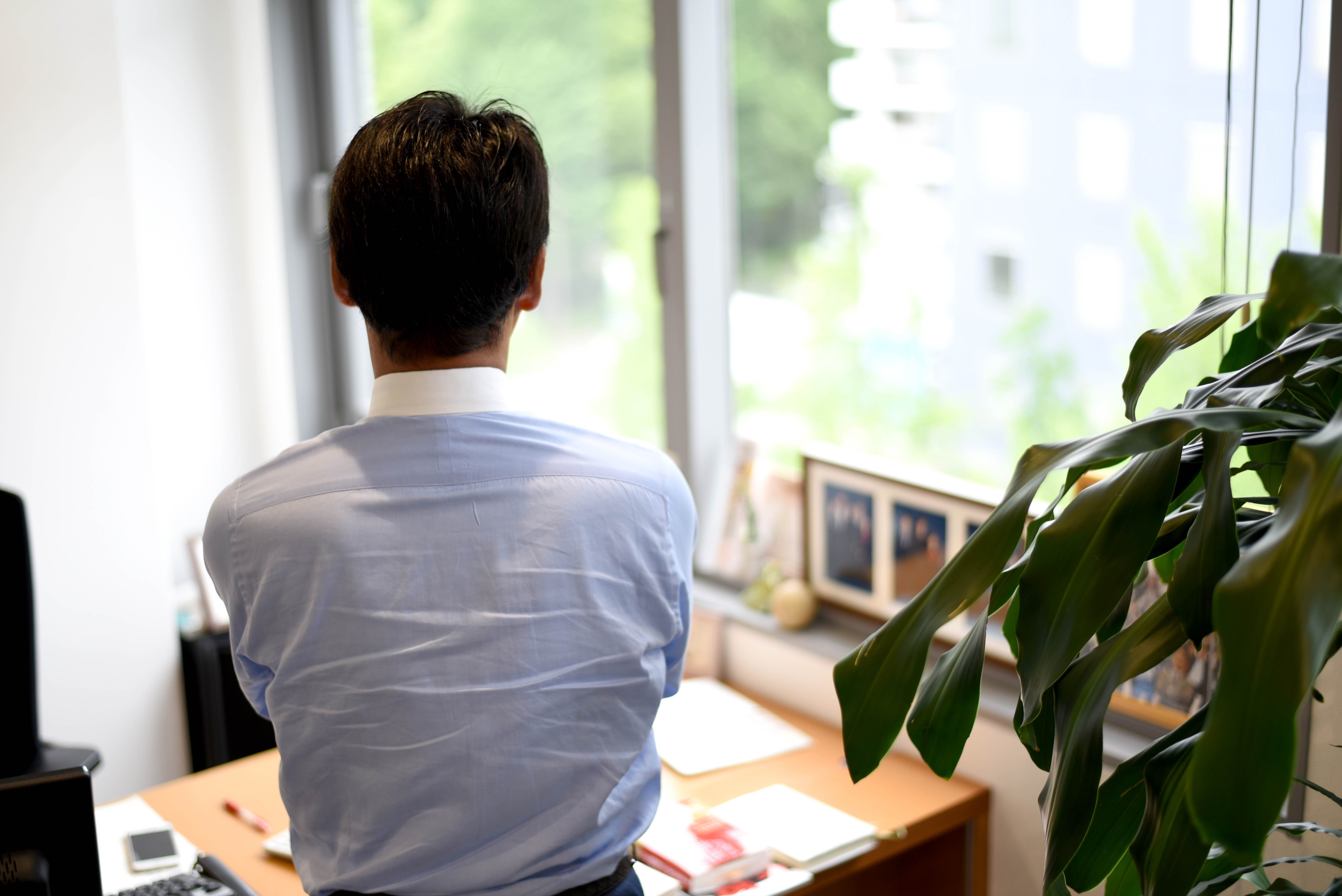 社長はこの部屋から眺める、うつぼ公園の景色がお気に入りで、息抜きにこうして外を眺めているようです。