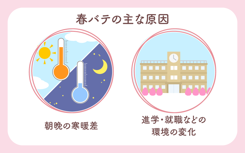 また春は進学や就職、部署異動など、環境の変化が多い時期でもあります。こういった環境の変化が原因で蓄積されたストレスも、春バテの症状を引き起こす要因となります。