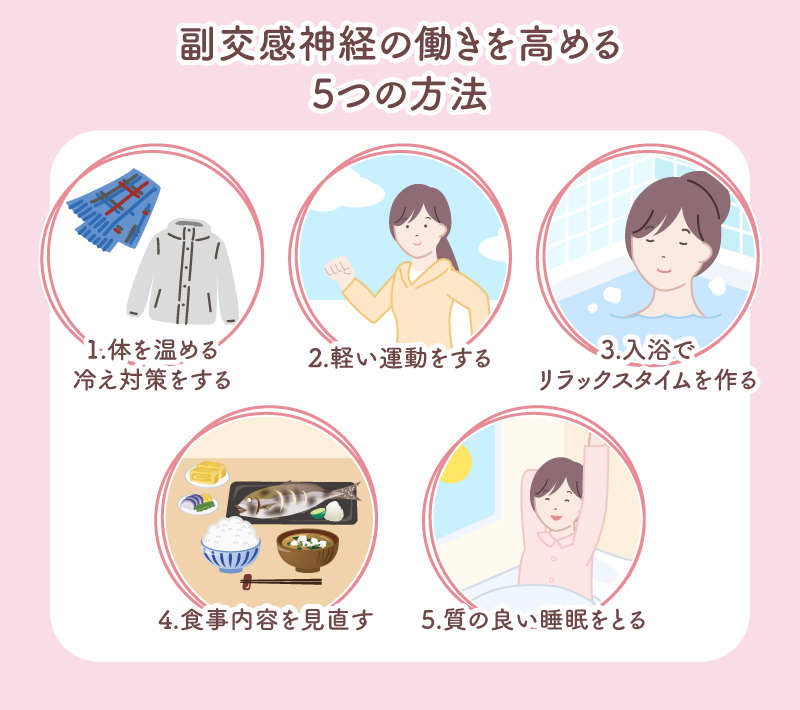 ここからは、副交感神経の働きを高める方法を5つ紹介します。
