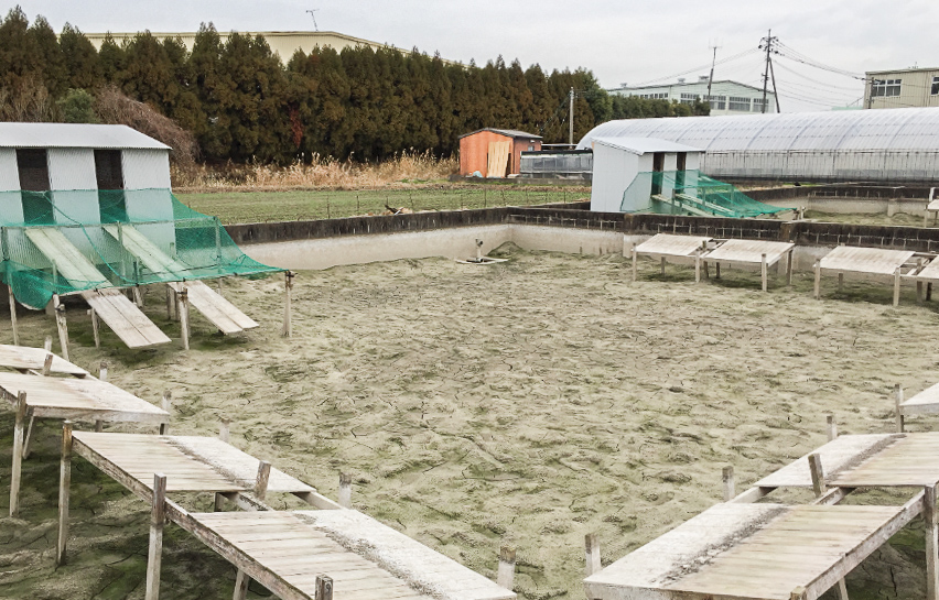 おそらくご覧頂いている写真は「すっぽん小町」が誕生してから初公開だと思います!!何もないけすの中って巨大な砂場みたいですね。
