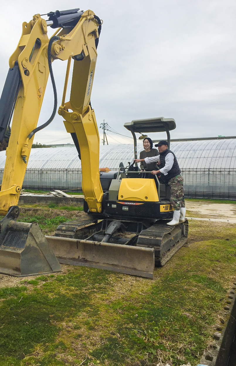空になった状態のいけすを1ヶ月以上かけて整えた後は、ショベルカーで土を掘り起こし、新しい土に入替えます。この日は翌日から作業する為に事前準備・・・・・のはずが、初めて目にするショベルカーを前に、「わたし乗りた~い!!」と思わず発言。笑顔で「よかよ~」と会長が言って下さったので、お言葉に甘えて座らせて頂きました!会長ありがとうございます(*^^*)