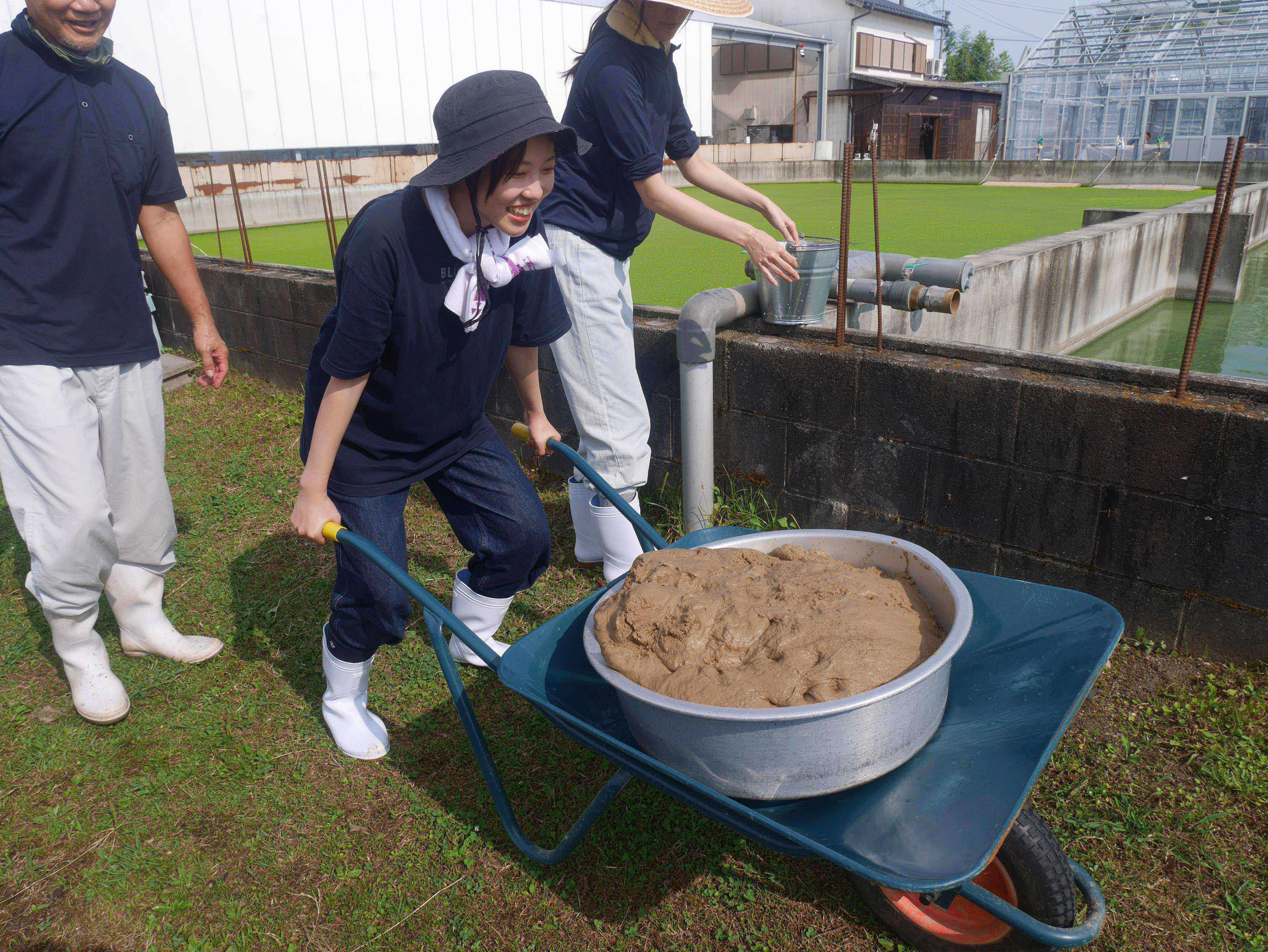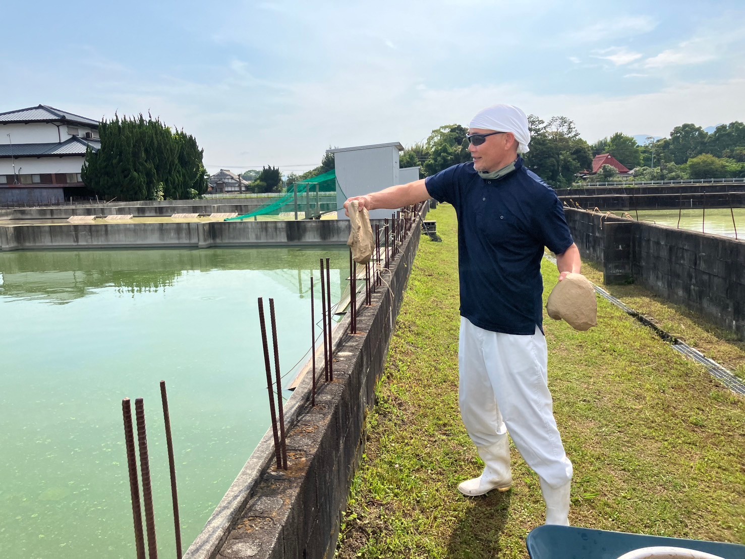 健康状態を見て必要なえさを混ぜたり、水温を1日に何度も確認したりと、水温・水質・土壌・えさ、何一つ妥協することなく育てられています。