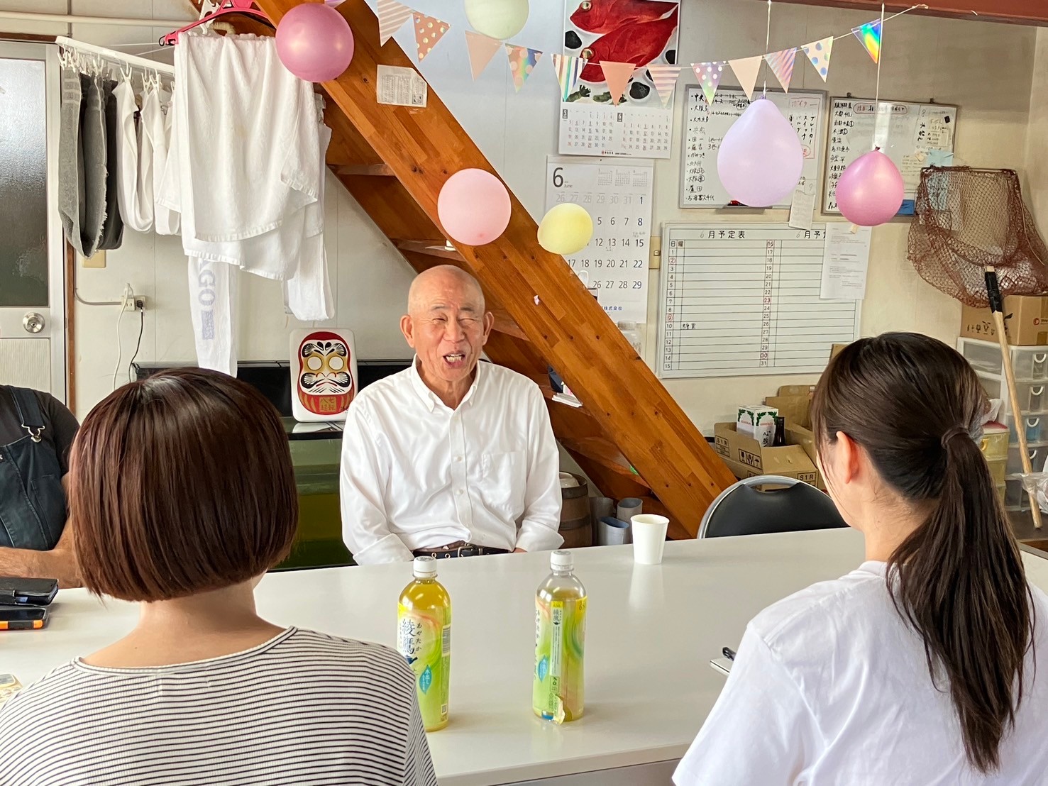 養殖場に到着してすぐ、「冷蔵庫にお茶があるから飲んでから始めようか」「帽子もあるからこれ使ってね」と私たちのことを温かく迎えてくださりました。