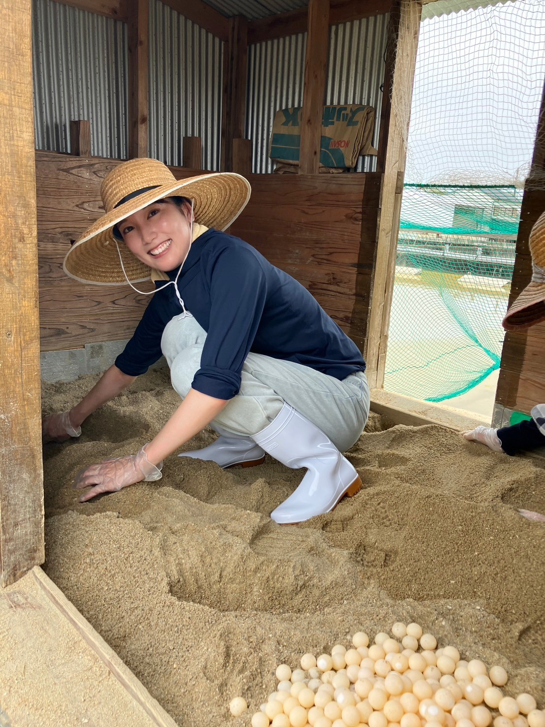 穴の深さは30㎝以上にもなるそうで、卵が割れないようにヒヤヒヤしながら掘り進めます。