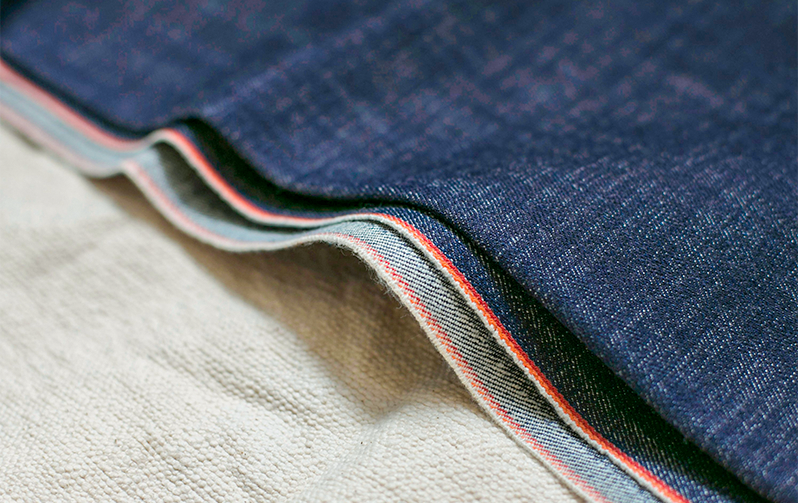 旧式の機械で織られた生地の特徴は、端が“耳”と呼ばれる白いほつれ止めで補強されていること。