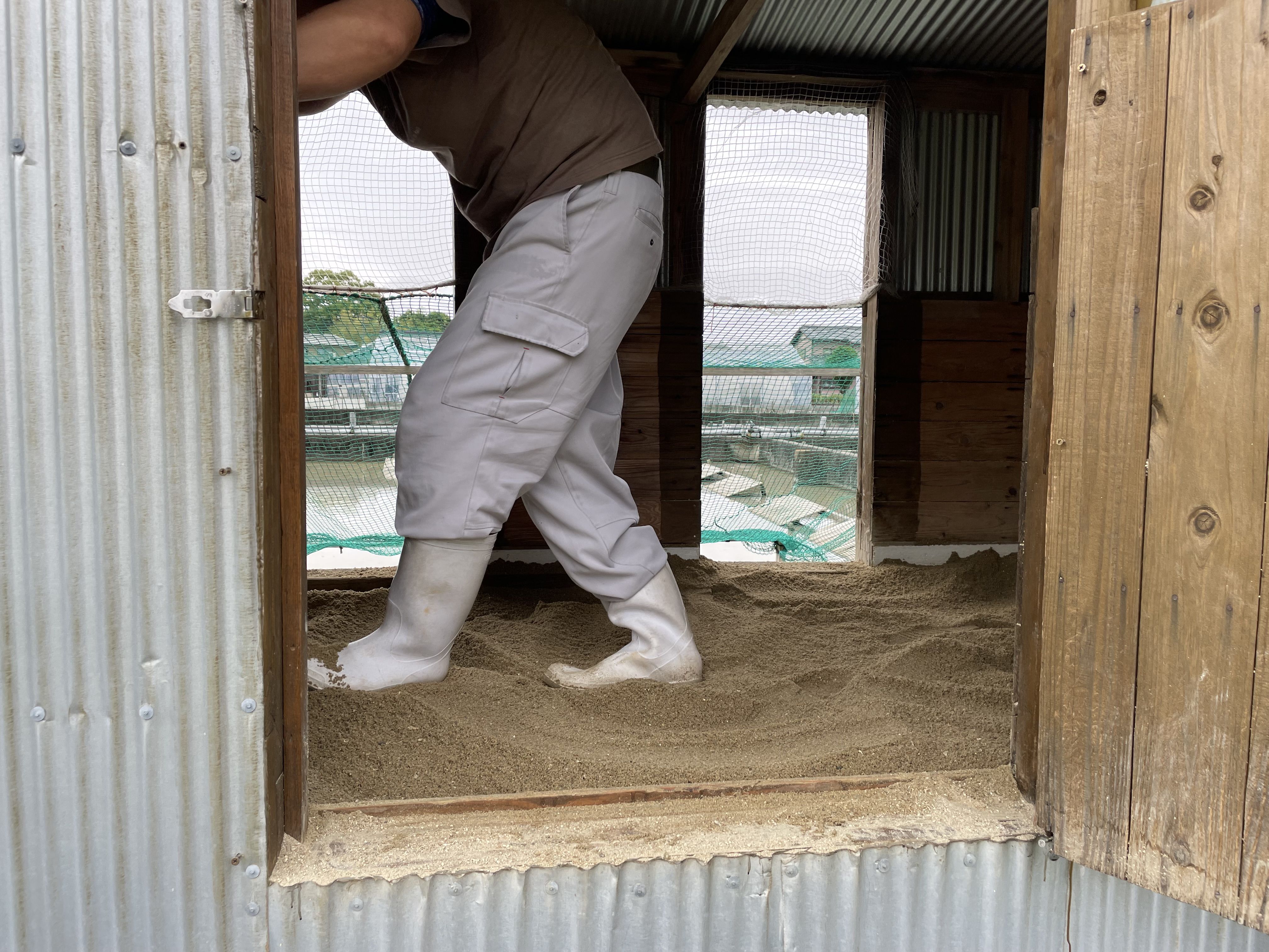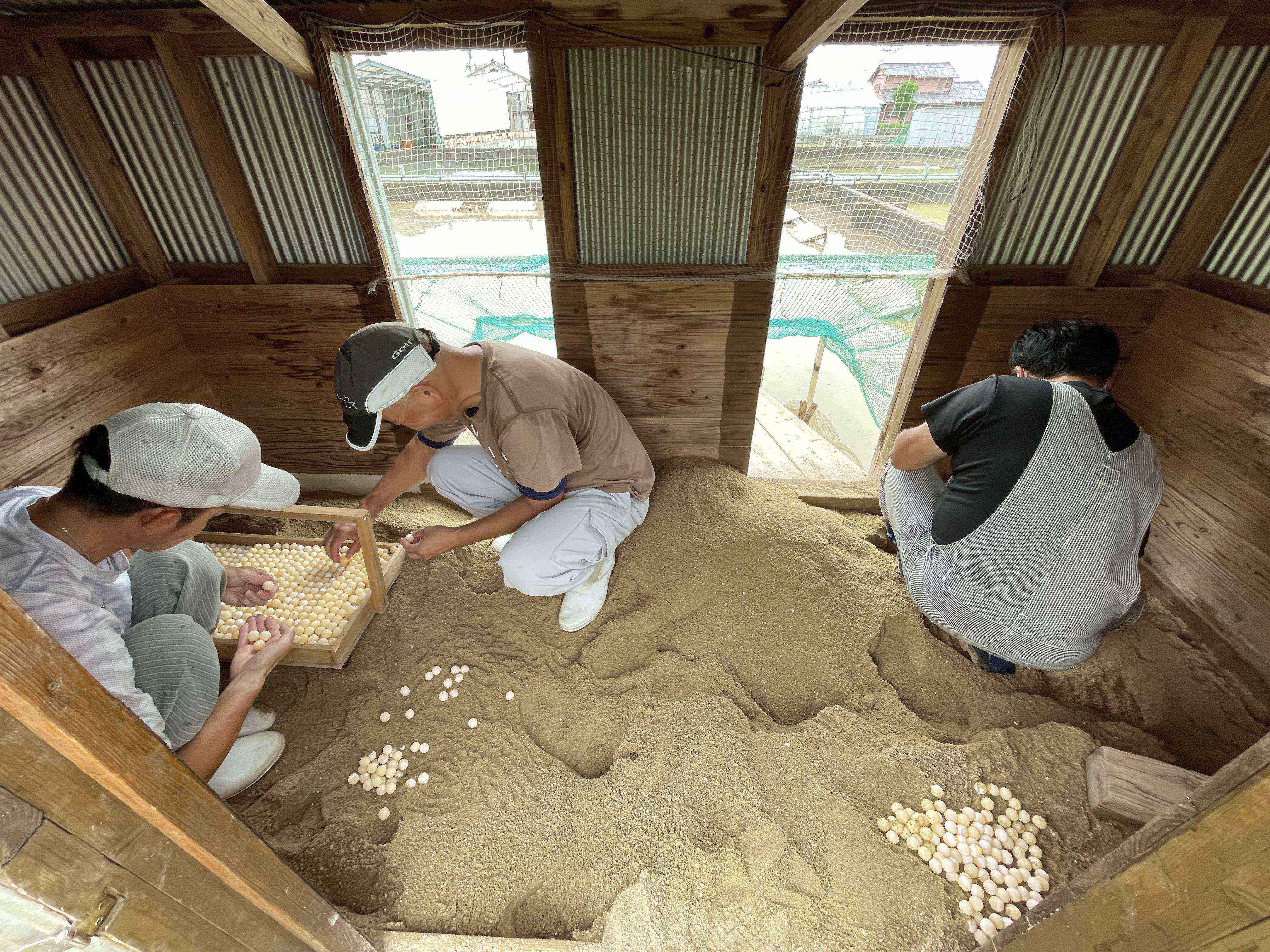 産卵シーズンはお盆頃まで毎日続きます。そのため、卵を全て収穫した後は掘り起こした砂をふかふかのお布団のように整えます。スタッフさんの細やかな心遣いのおかげで、お母さんすっぽんは毎日安産です(^^♪