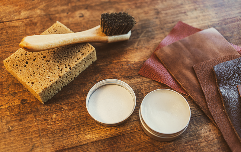 ・革の表面を傷めないよう柔らかい馬毛ブラシでブラッシング