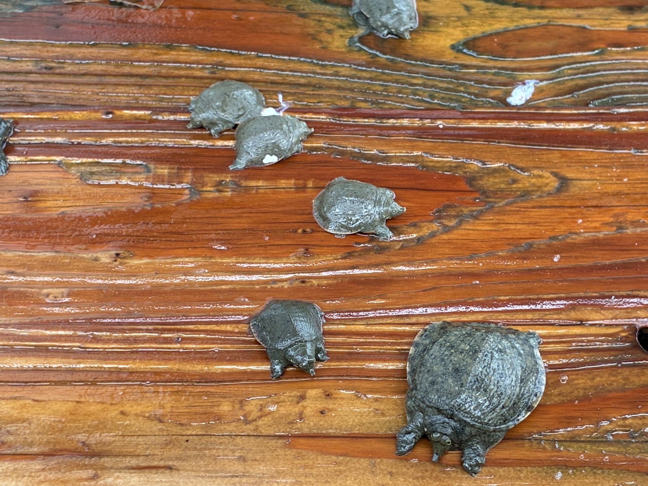 10月になると産卵シーズンは完全に終わり、孵化もだんだん落ち着いてきますが、この日も元気よく200匹の赤ちゃんすっぽんが誕生しました。いちばん早く生まれた子が7月生まれです。この日生まれた子と比べると、その成長ぶりがお分かりいただけるでしょうか^^♩