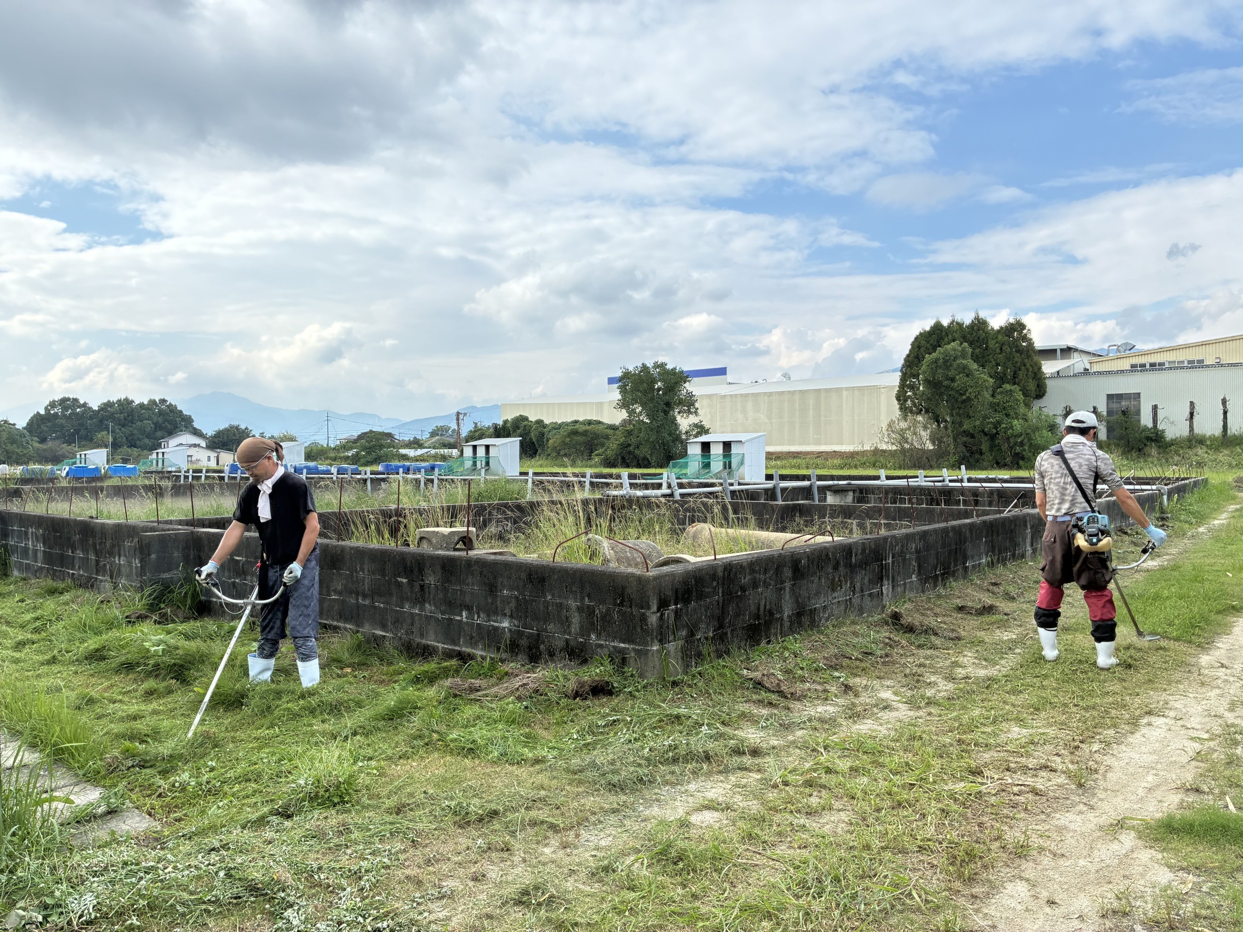今日はスタッフさん全員で草刈りデーです。はがくれ養殖場では除草剤は一切使用しません!広大な敷地なので時間と手間はかかりますが、いけすの周囲だけではなく、目に見えない裏手や道端の隅々まで手分けして、きれいに刈ります。