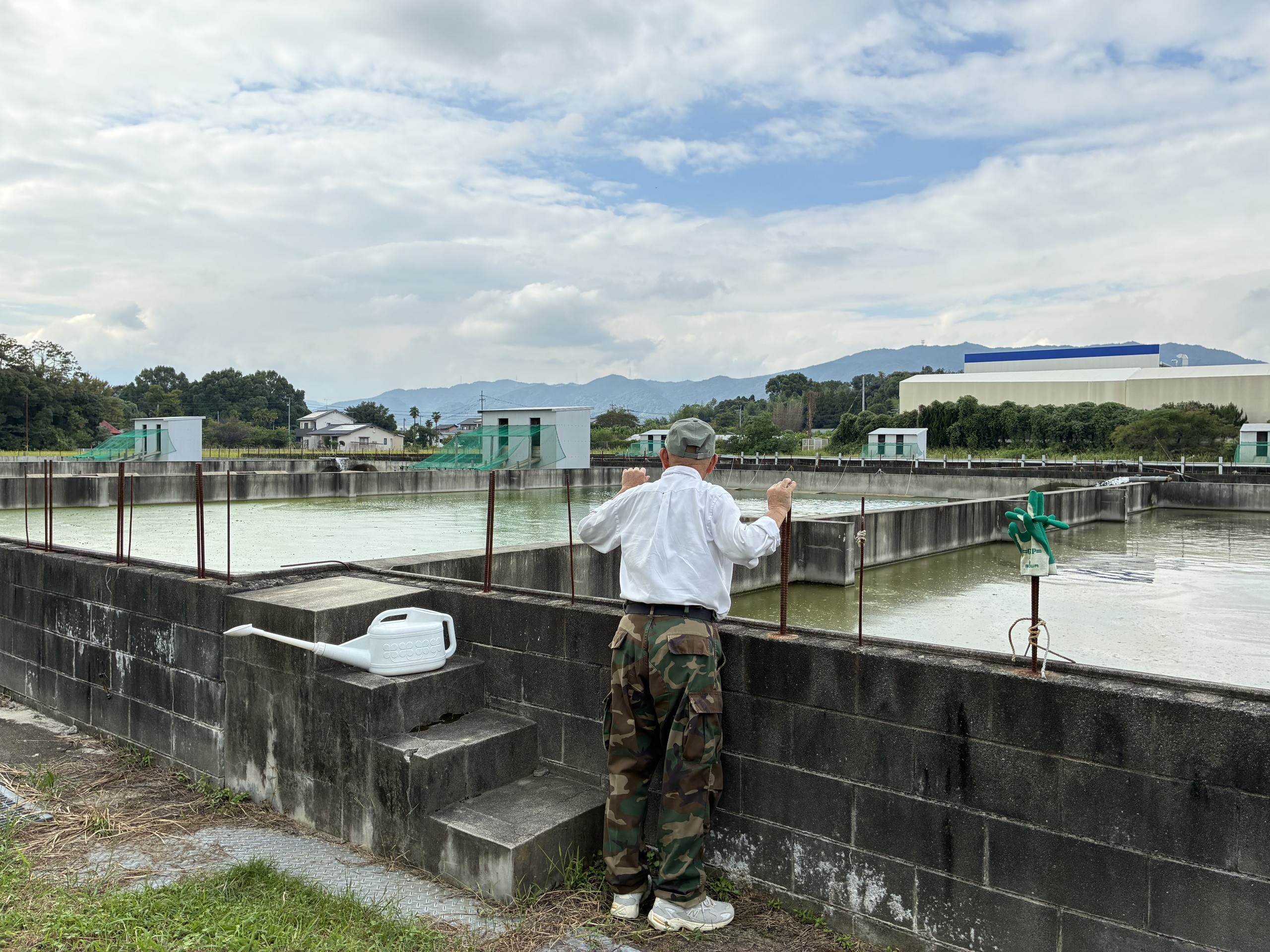 そんないけすの周囲をゆっくりと歩く朝鵜会長。ひとつひとつのいけすの前で立ち止まり、一生懸命働いてくれたすっぽんたちを労うかのように眺める姿がとても印象的でした。