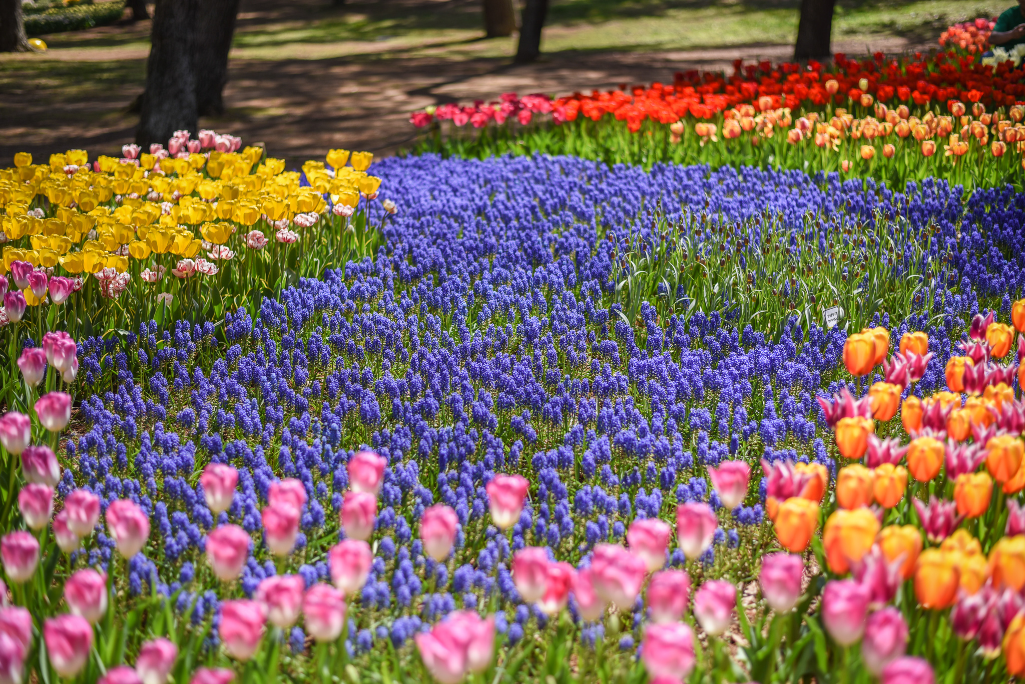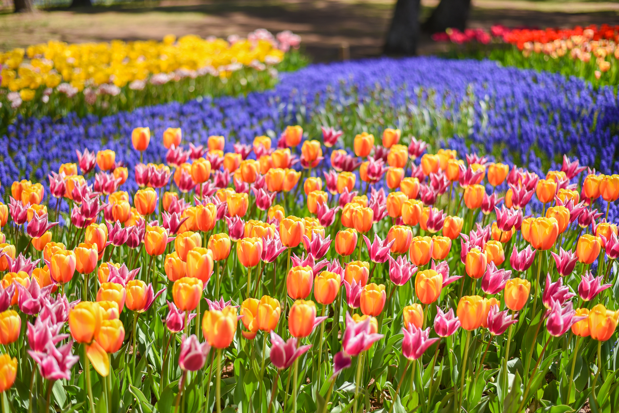 色だけでなく形の種類も豊富なチューリップ。あちらこちらで色とりどりに咲き、ワクワクと楽しい気分にさせてくれます☆