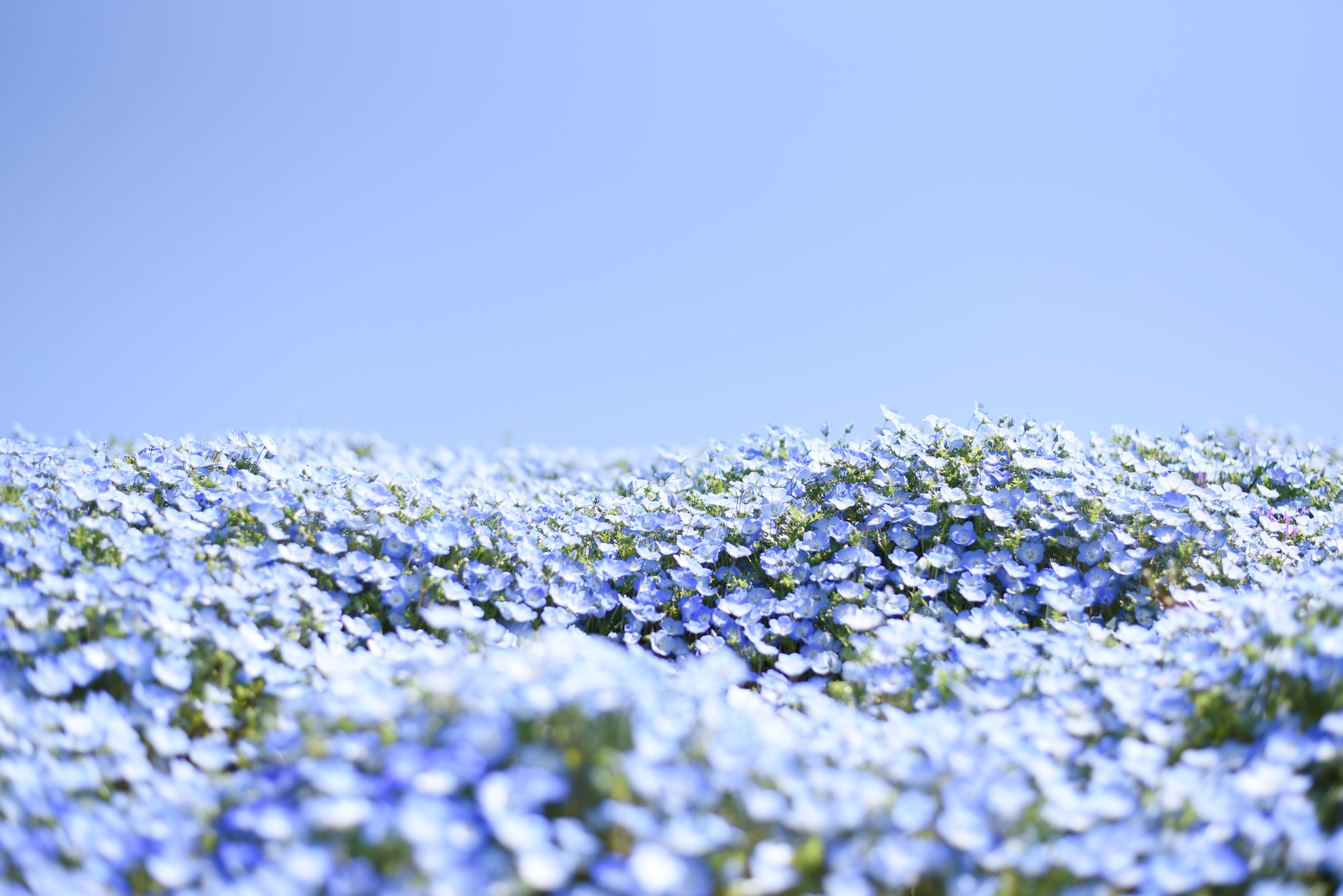 その後は空色のお花で埋め尽くされた丘へ。この日は雲一つない快晴で、お花が空まで続いているように見えました(*^^*)