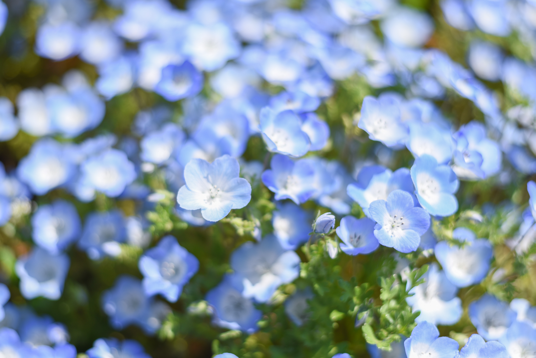 こちらはネモフィラというお花。ひとつひとつのお花はこんなに小さいのですが、ネモフィラが丘一面を敷き詰めて咲いているので、丘全体が空色に…♡丘を頂上までのぼると…