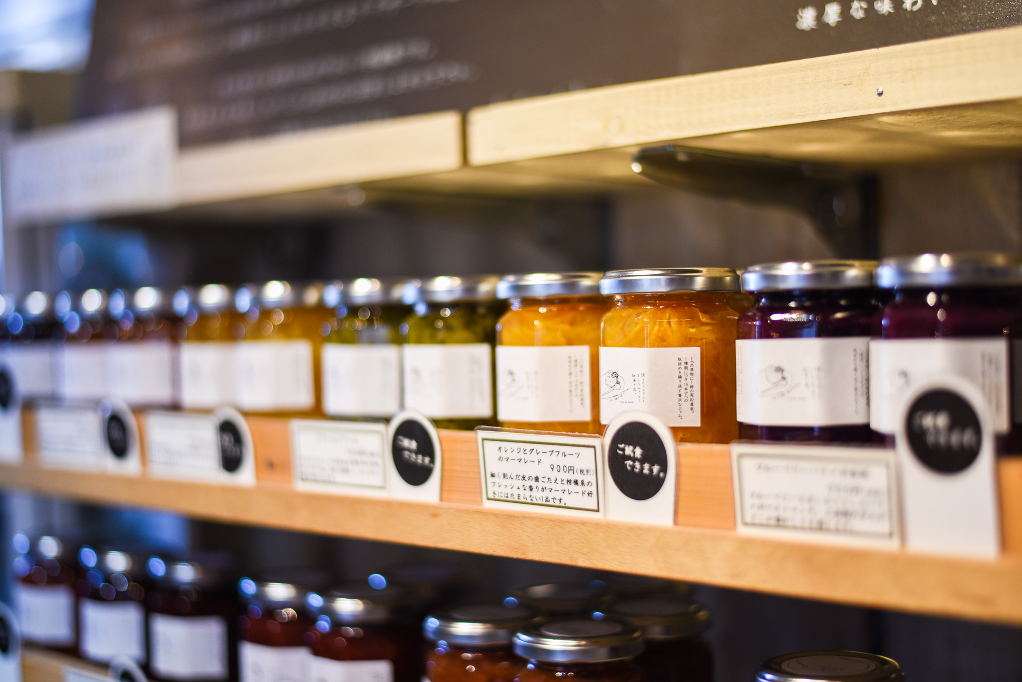 店内には自家製コンフィチュールも販売されています。1つの果物に1軒の契約農家さん。しかも無農薬・減農薬の農家さんとのお付き合いを密にされ、発売当初からペクチン不使用の無添加コンフィチュールにこだわってこられました。試食させていただき、おいしくて感動!旬の果物を使用し、2種類以上の果物が入った他ではない味わえないコンフィチュール。私も池田もこのおいしさを持って帰り、家族で楽しみたい!と2本ずつ買わせていただきました♪