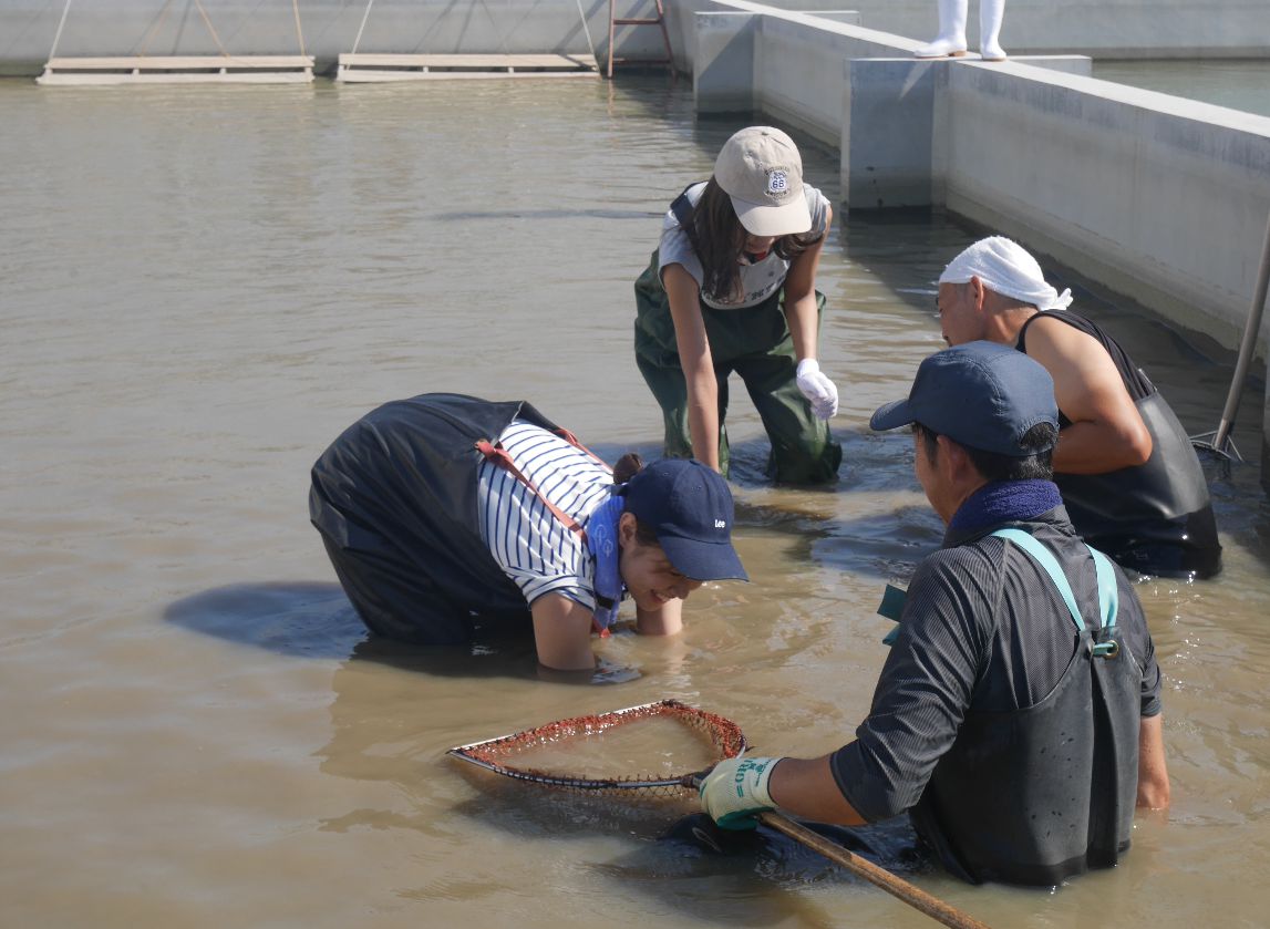 いつもは商品企画の先輩スタッフ桧垣が生産地だよりをお届けしておりますが、今回は私たちが養殖所での研修の様子をお届け致します(^^)/