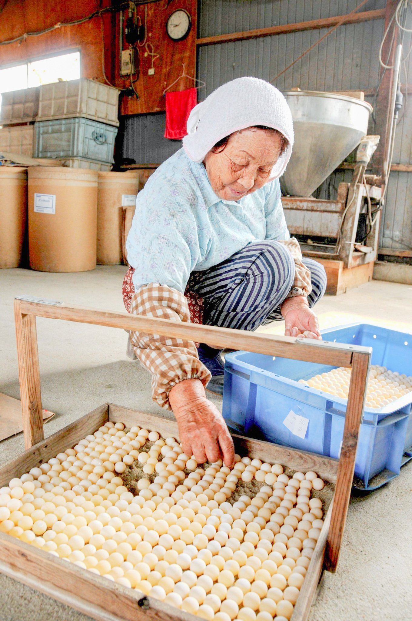 パワフルなはがくれのおばあちゃん。「すっぽんの卵は可愛い」といつも笑顔あふれます。