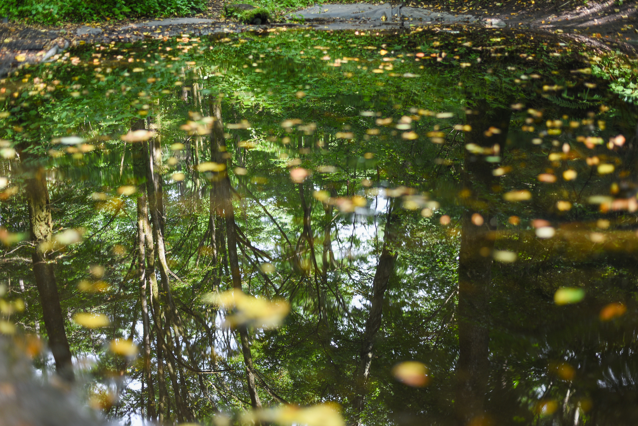 途中では池が。たくさんの生き物が住んでいます。 楽しく、工夫しながら説明してくださった桒田さん。ぐるーっと山の中をめぐって、あっという間にケラ池に戻ってきました! 天気は晴れているのにゴロゴロと雷の音が!!山のお天気は変わりやすいんだそう。雨に降られる前に帰ってくることができました。(所要時間は約2時間でした。)