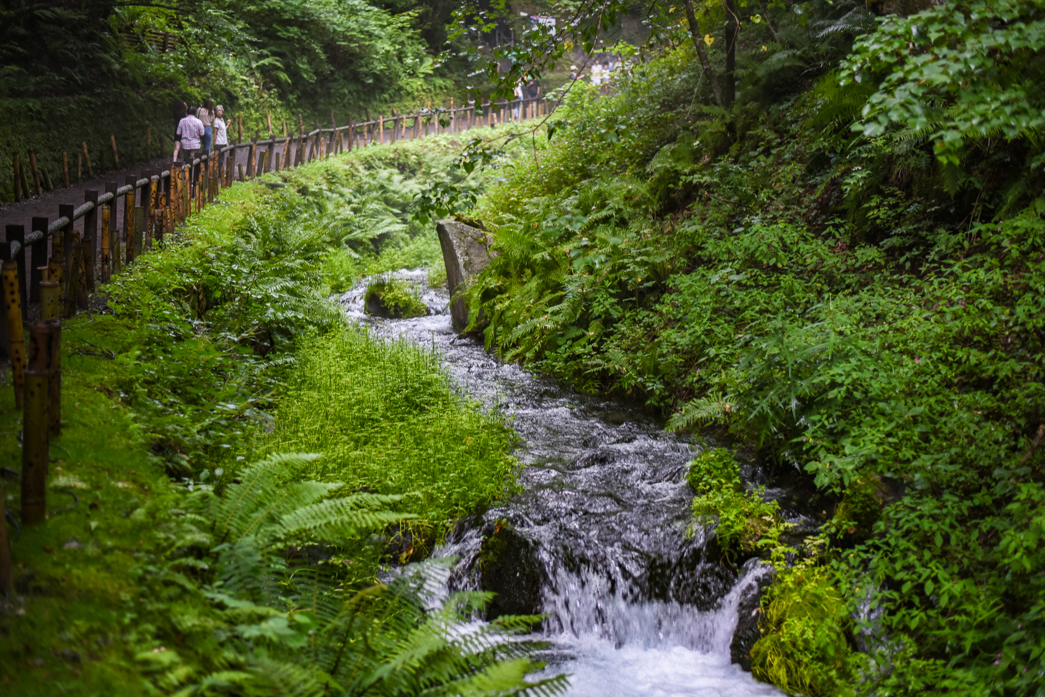 ピッキオさまを出た後に向かったのは、白糸の滝です。白糸ハイランドウェイ沿いにあります。滝に向かって歩いていると、とっても涼しい!川の流れる音が耳に心地よく響きます。