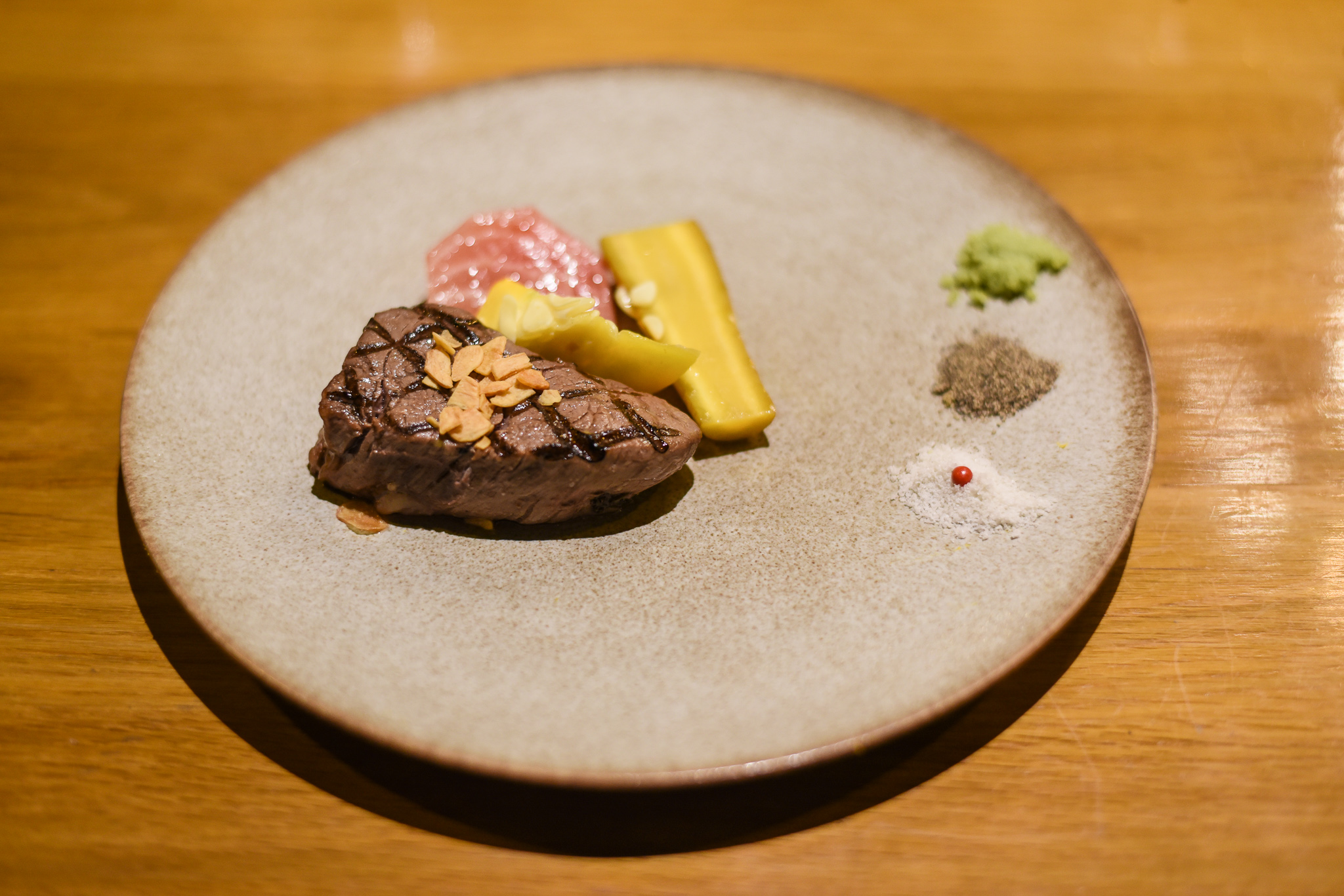 次に運ばれてきたのは蓼科牛とお野菜。そしてお肉の下にはマッシュポテトが敷かれています。シャキシャキのお野菜に、しっかりした味の蓼科牛がとてもよく合います。パックっと一瞬でなくなりました(笑)