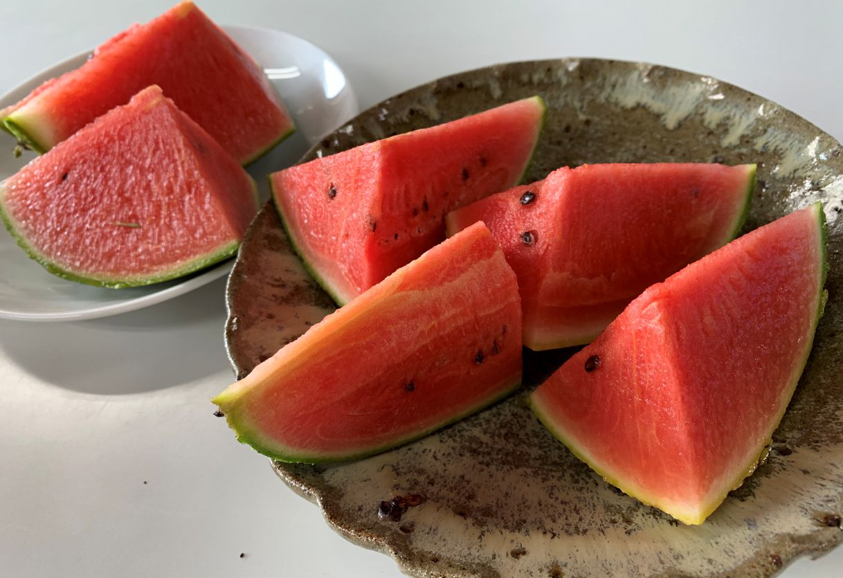 最後にご紹介するのは、おばぁちゃんの家庭菜園で採れたスイカです。昨年もご馳走になった甘~いスイカ!私の訪問日に合わせて、冷蔵庫で冷やしておいてくださっており、おばぁちゃんのその気持ちが何よりうれしく、格別の美味しさでした!おばぁちゃん、ご馳走さまでしたー