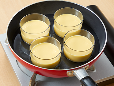 フライパンから取り出し、粗熱を取る。粗熱が取れたら、水をはったバットに並べてしっかり熱を取る。熱が取れたら冷蔵庫に入れて1〜2時間ほど冷やす。
