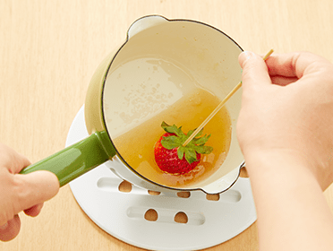※フルーツはカットしたものや水気があるものを飴づけすると、汁気が出て飴が短時間で溶けやすくなります。