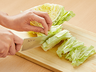 キャベツは1.5cm幅に切る。