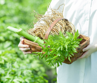 何度も現地を訪れ、明日葉の品質はもちろん、農法や栽培条件、環境配慮や地域貢献の姿勢にも共感できる農家さんと協働しています。