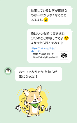 男性この物語を読んで、後輩もできて上司もいて…いろいろな狭間で悩みながら働いている友人を思い出し、贈りました。彼なりに悩み迷うこともあると思うけど、僕は彼のことをすごく尊敬しているし、その想いも伝わるといいな(^^)