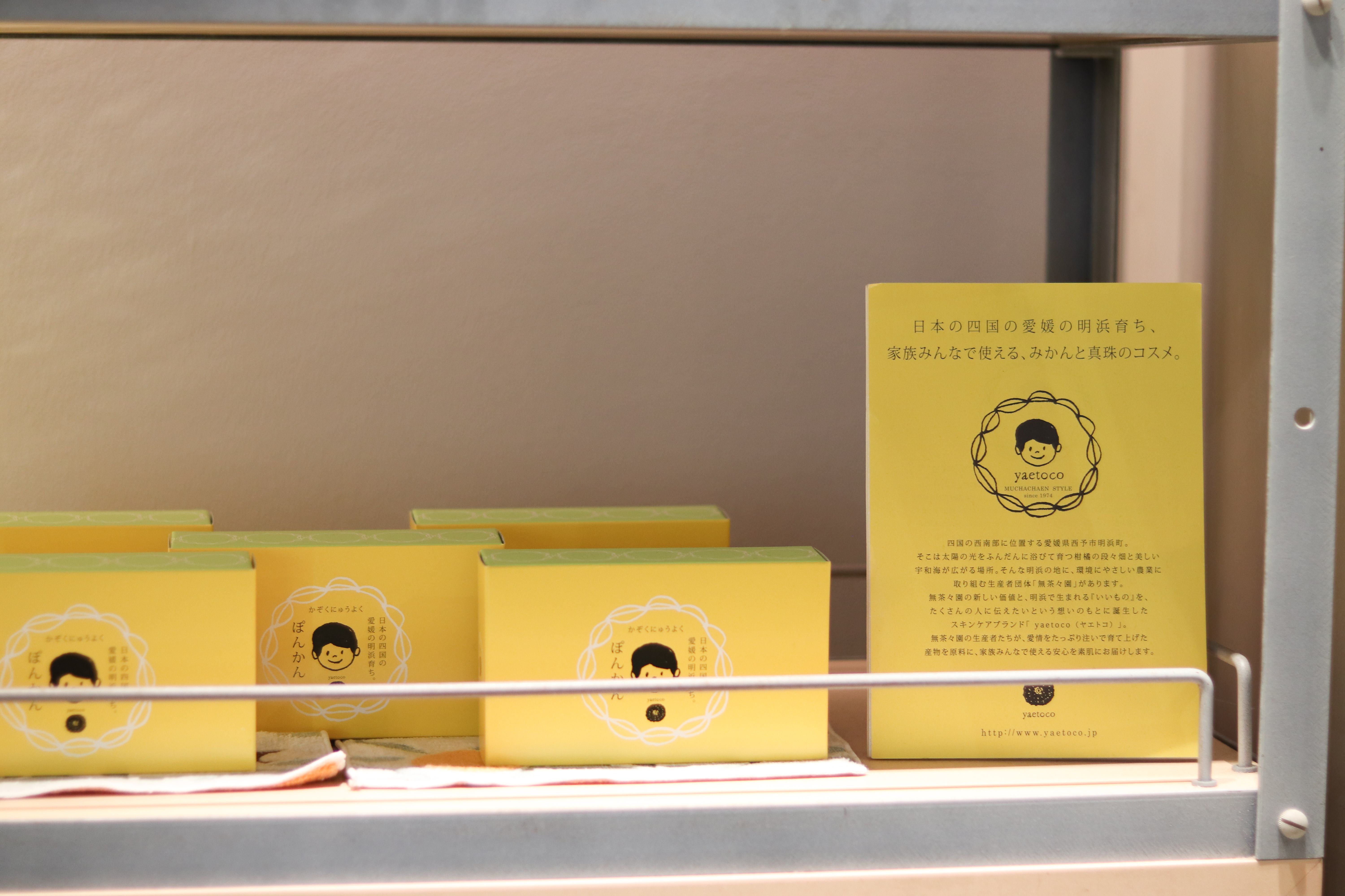 中へ入ってみと、みかんジュースやジャムなどの食べ物だけではなく、みかんを使ったコスメなどの化粧品や製油など幅広い商品が並んでいます。みかんが名産品なだけあります!