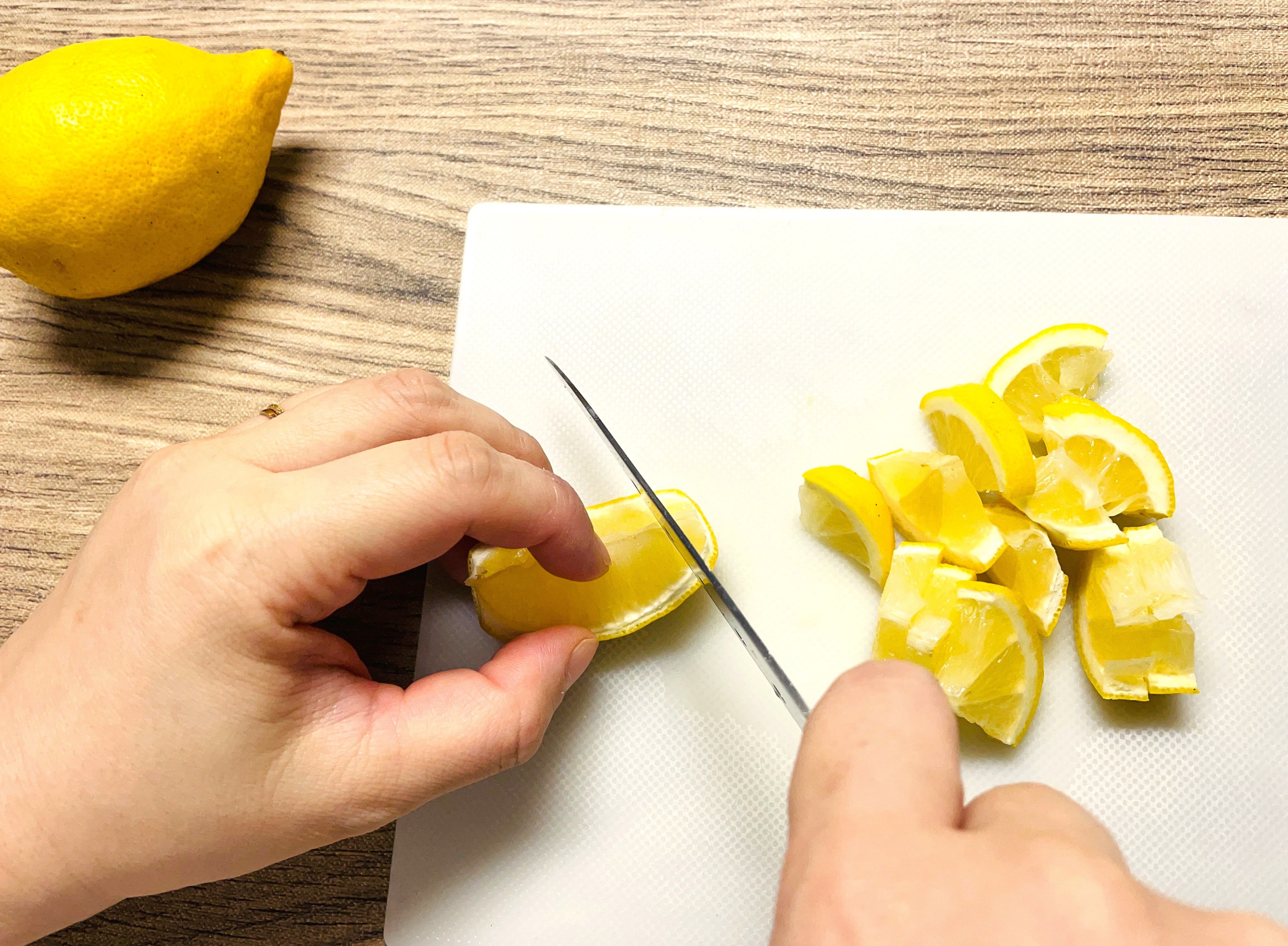 さらにレモンを小さめのざく切りします。