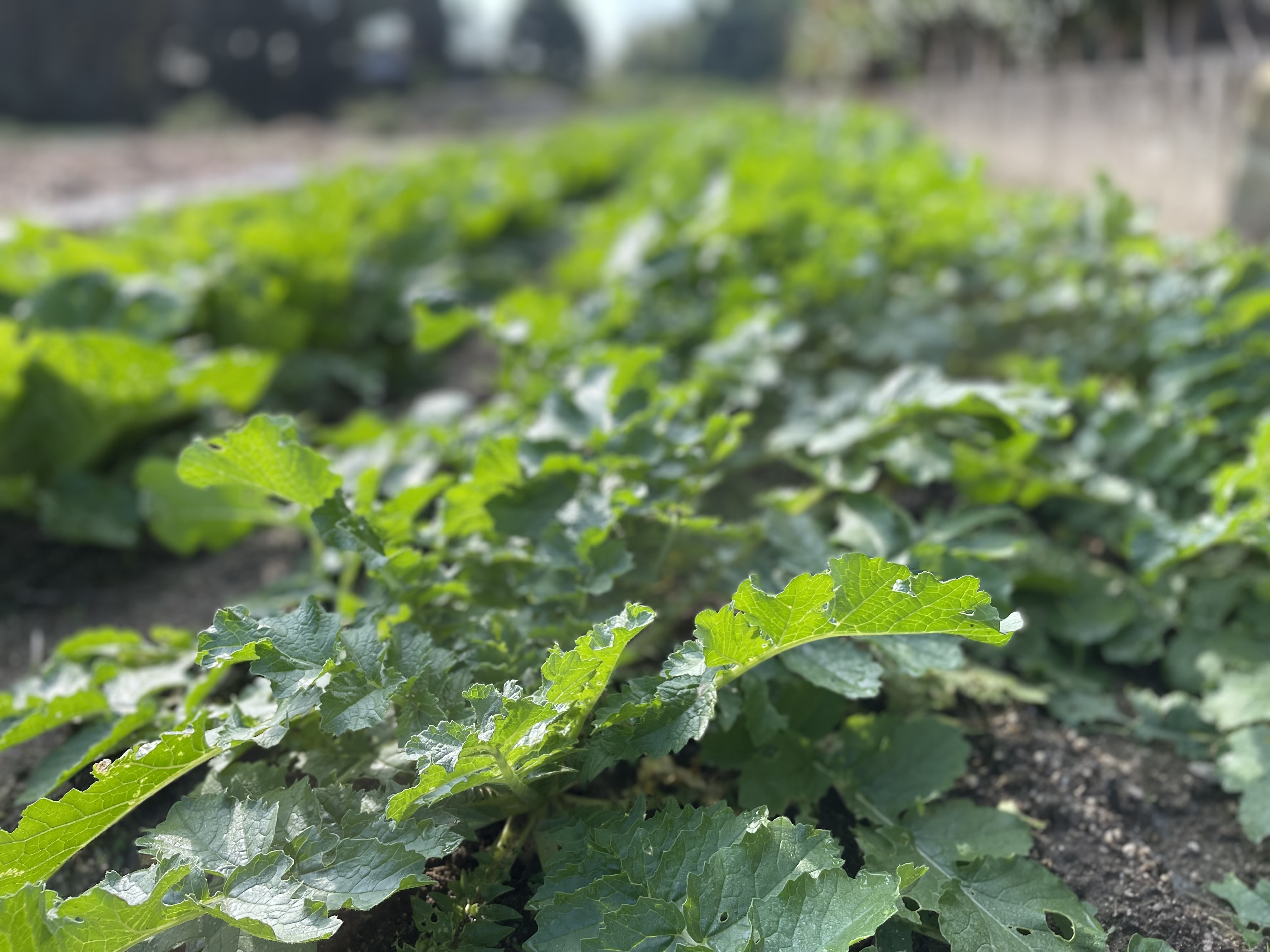 9月末の訪問時に種をまいたのですが、わずかひと月半ですくすく成長し、大根の葉が青々と茂っていました!