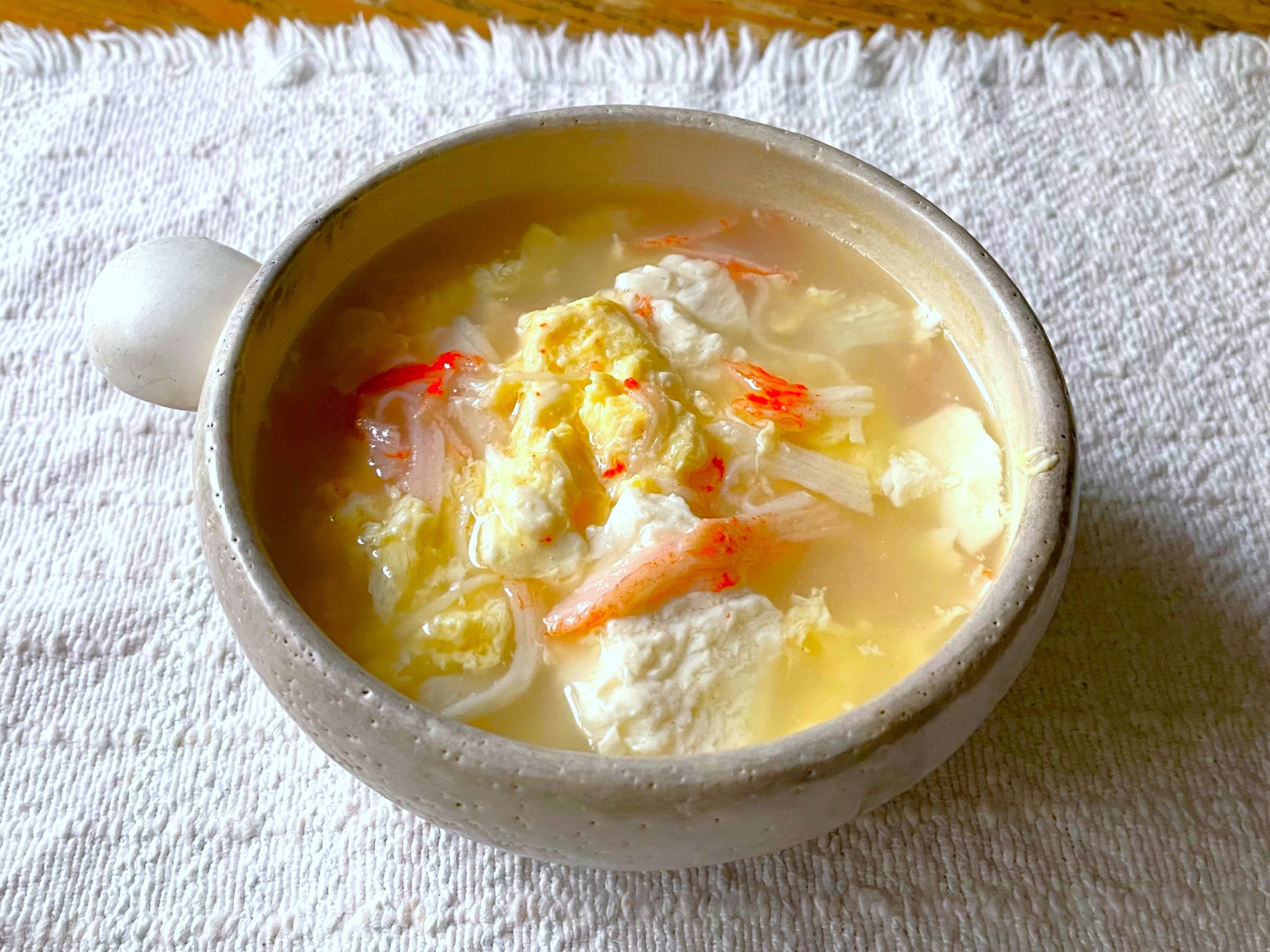 包丁&まな板いらず!くずし豆腐のカニたまスープ