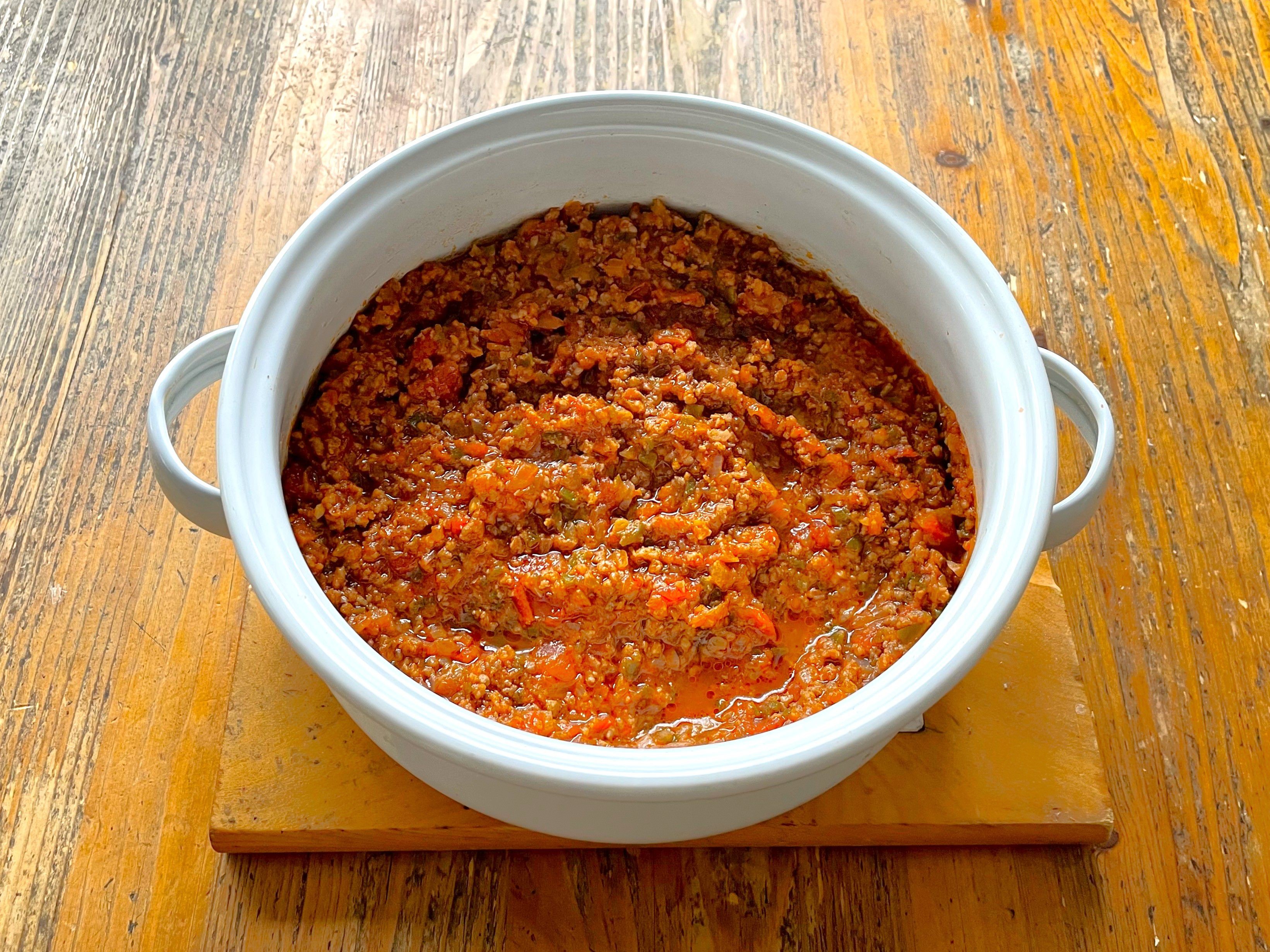 ④蓋をとり、水分を飛ばすように時々混ぜながら、さらに約10分煮込む