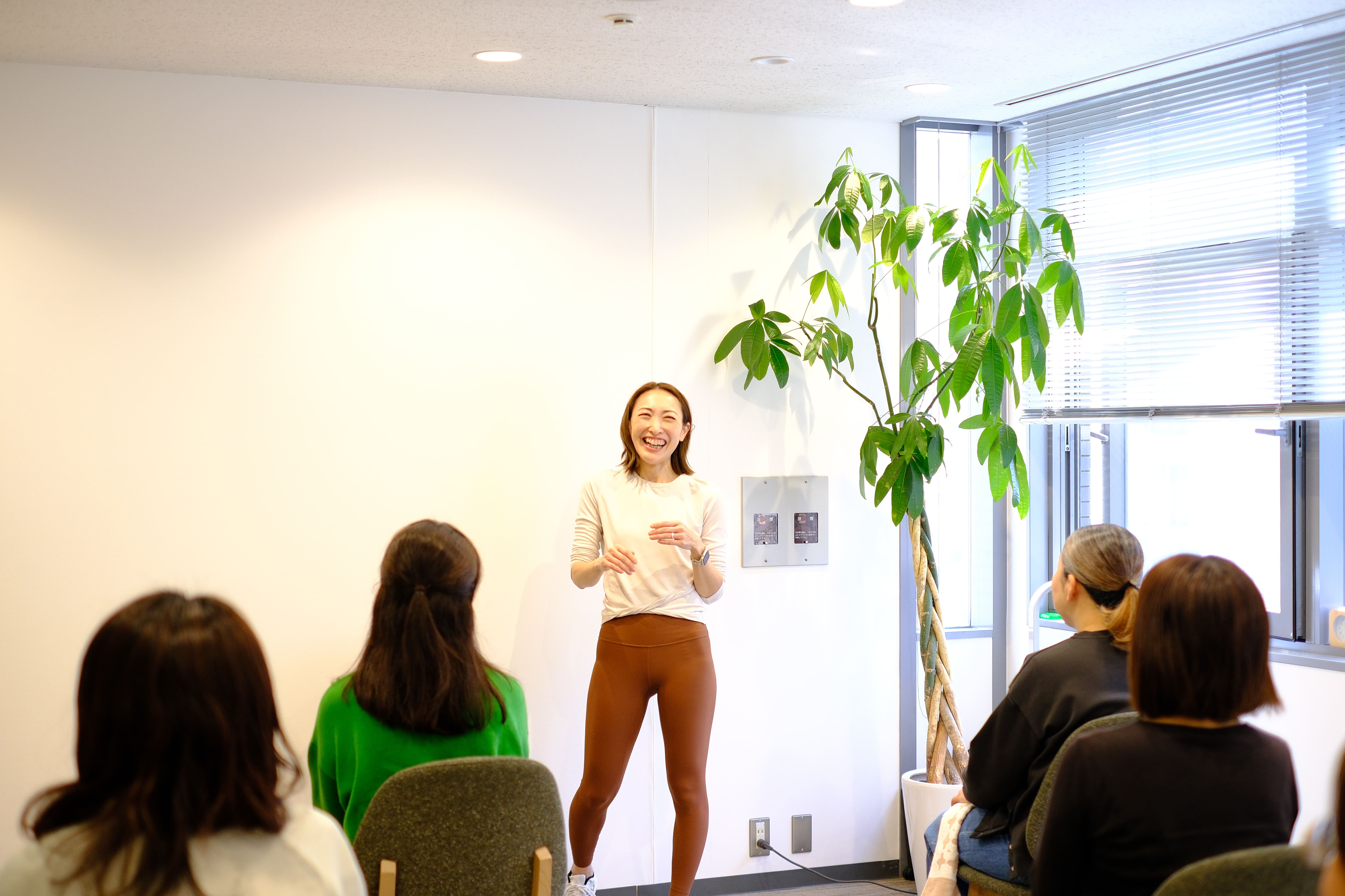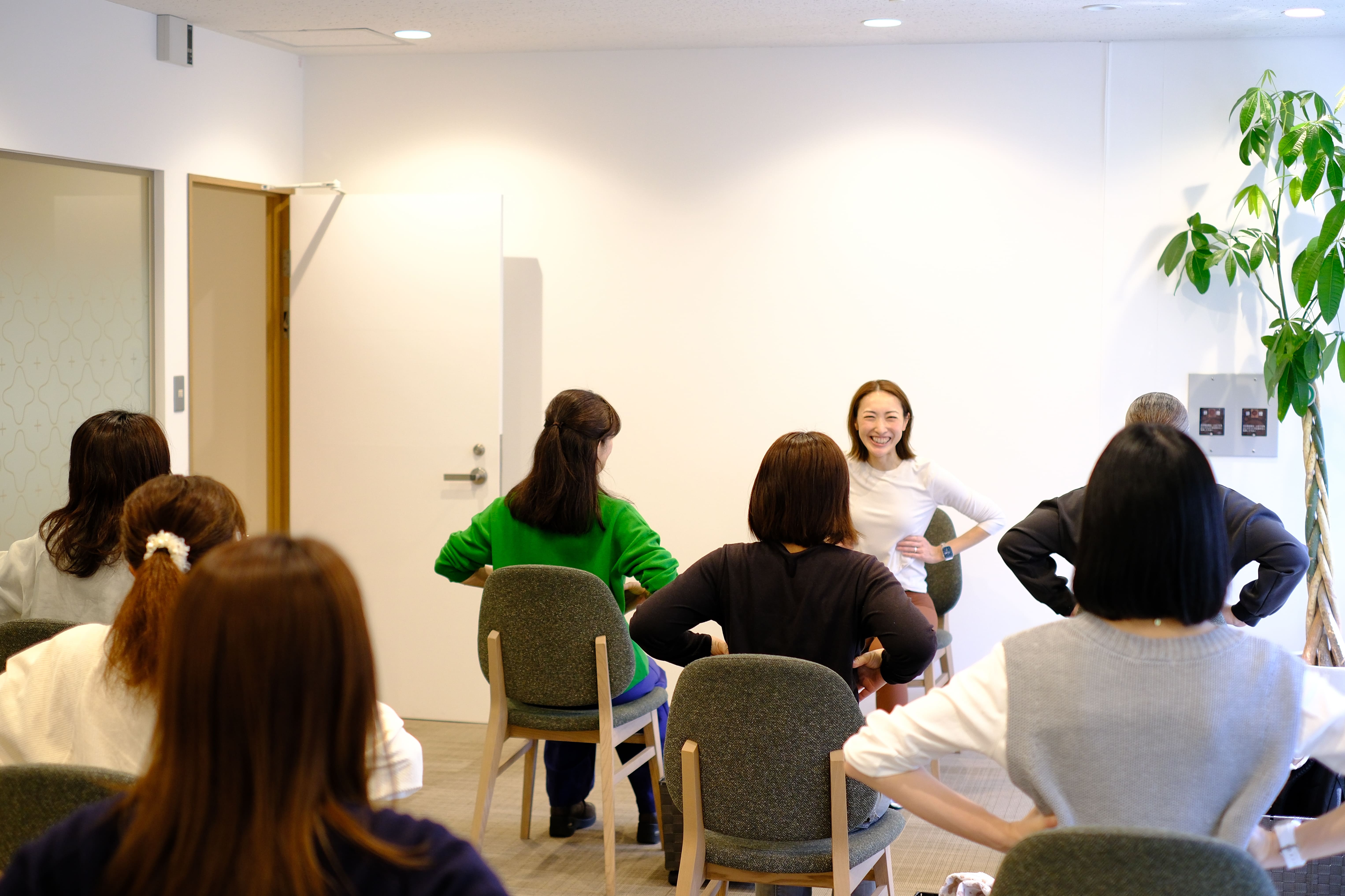 骨盤の位置を確認したり、呼吸を整えたり。今回は、気軽にご参加いただけるよう私服のままできる動きをご提案いただきました。