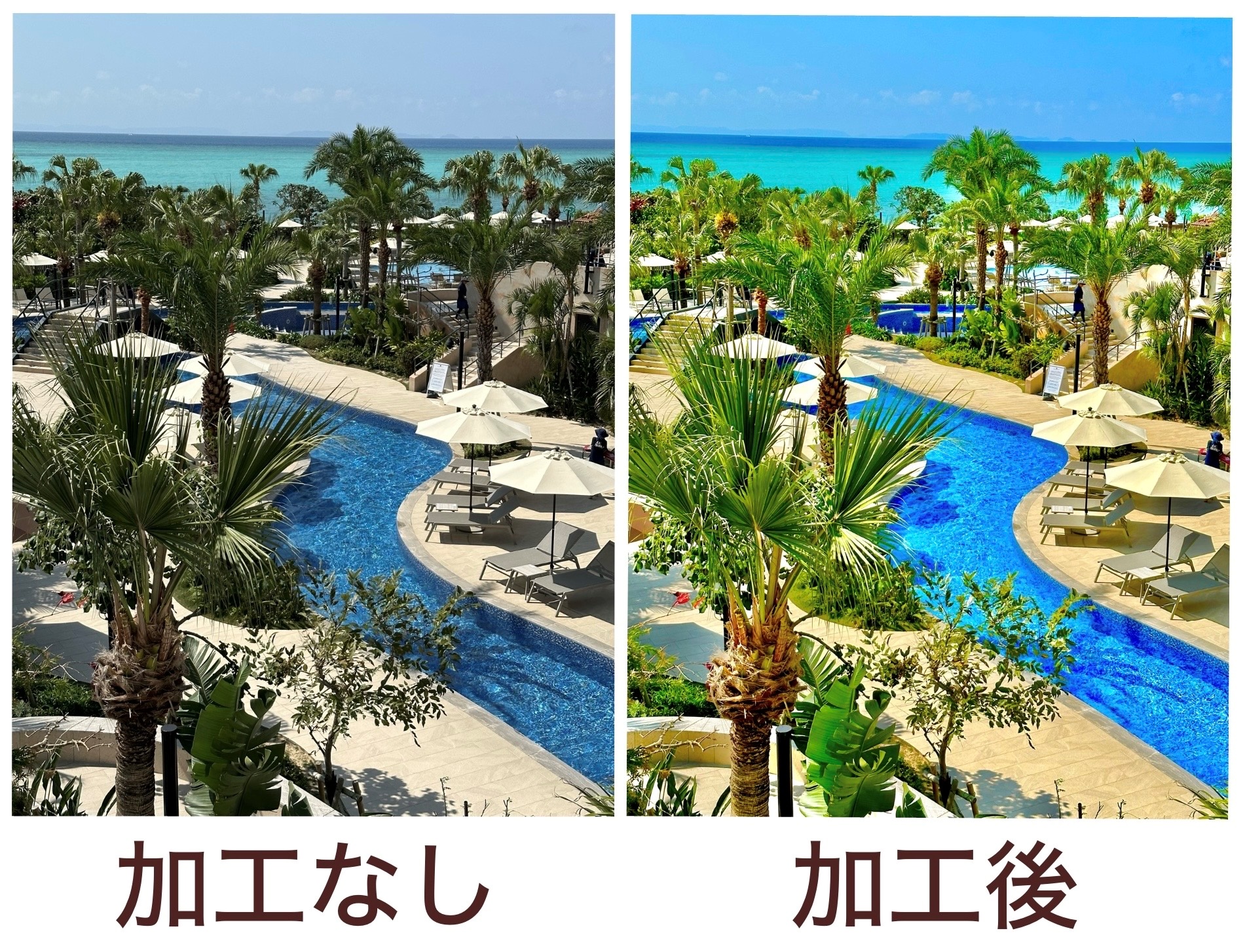 この基本操作だけでも、ずいぶん沖縄のリゾート感が増したのではないでしょうか?