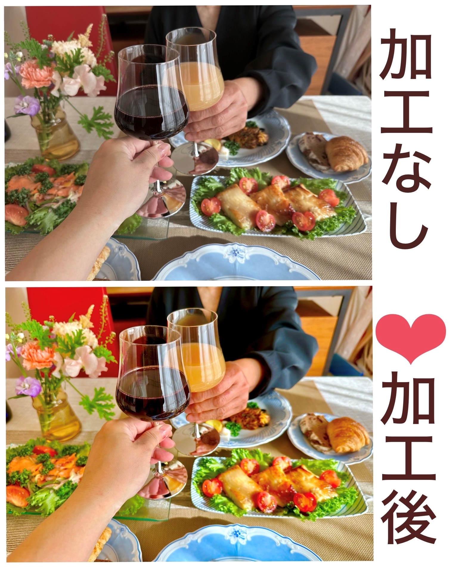 ✿食事会の写真を比較したものがコチラ↓